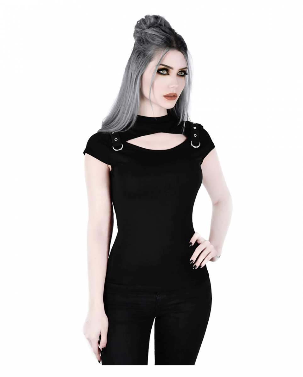 Xara Keyhole Top von Killstar für Gothic Fans Sexy Gothic Shirt mit Riemen Akzenten, Ösen und Ringen Das Xara Keyhole Top von Killstar passt perfekt zu deinem alternativen Style. Dank den Akzenten ist das Gothic Top ein Hingucker, dem sich die düsteren Geschöpfe der Nacht kaum entziehen können. Sei gnädig. Sie können nicht anders, als dir zu verfallen. Das Xara Keyhole Top von Killstar ist ein schwarzes Gothic Top, das mit besonderen Details aufwartet. Das eng anliegende Shirt wurde mit Riemen mit Ösen und D-Ringen an den Schultern ausgestattet. Der hohe Keyhole Ausschnitt sorgt für das gewisse Etwas. Lieferumfang: 1 x Xara Keyhole Top von Killstar Farbe: Schwarz, Silber Größe: XS, S, M, L, XL, XXL Material: 95% Viskose, 5% Elasthan Tailliert geschnitten Hoher Ausschnitt Riemen-Akzent mit Ösen und D-Ringen Keyhole Ausschnitt an der Brust Größe: XS S M L XL 2XL EU 36 38 40 42 44 46 UK 8 10 12 14 16 18 US 4 6 8 10 12 14 Brustumfang: ca. 82 cm ca. 87 cm ca. 92 cm ca. 97 cm ca. 102 cm ca. 109 cm Taillenumfang: ca. 64 cm ca. 69 cm ca. 74 cm ca. 79 cm ca. 84 cm ca. 91 cm Hüftumfang: ca. 89 cm ca. 94 cm ca. 99 cm ca. 104 cm ca. 109 cm ca. 116 cm Der Artikel ist ein Modezubehör für Erwachsene und kein Spielzeug. Nicht für Kinder unter 3 Jahren geeignet. Kann Kleinteile enthalten, die verschluckt werden können – Erstickungsgefahr. Von Feuer und offenen Flammen fernhalten.