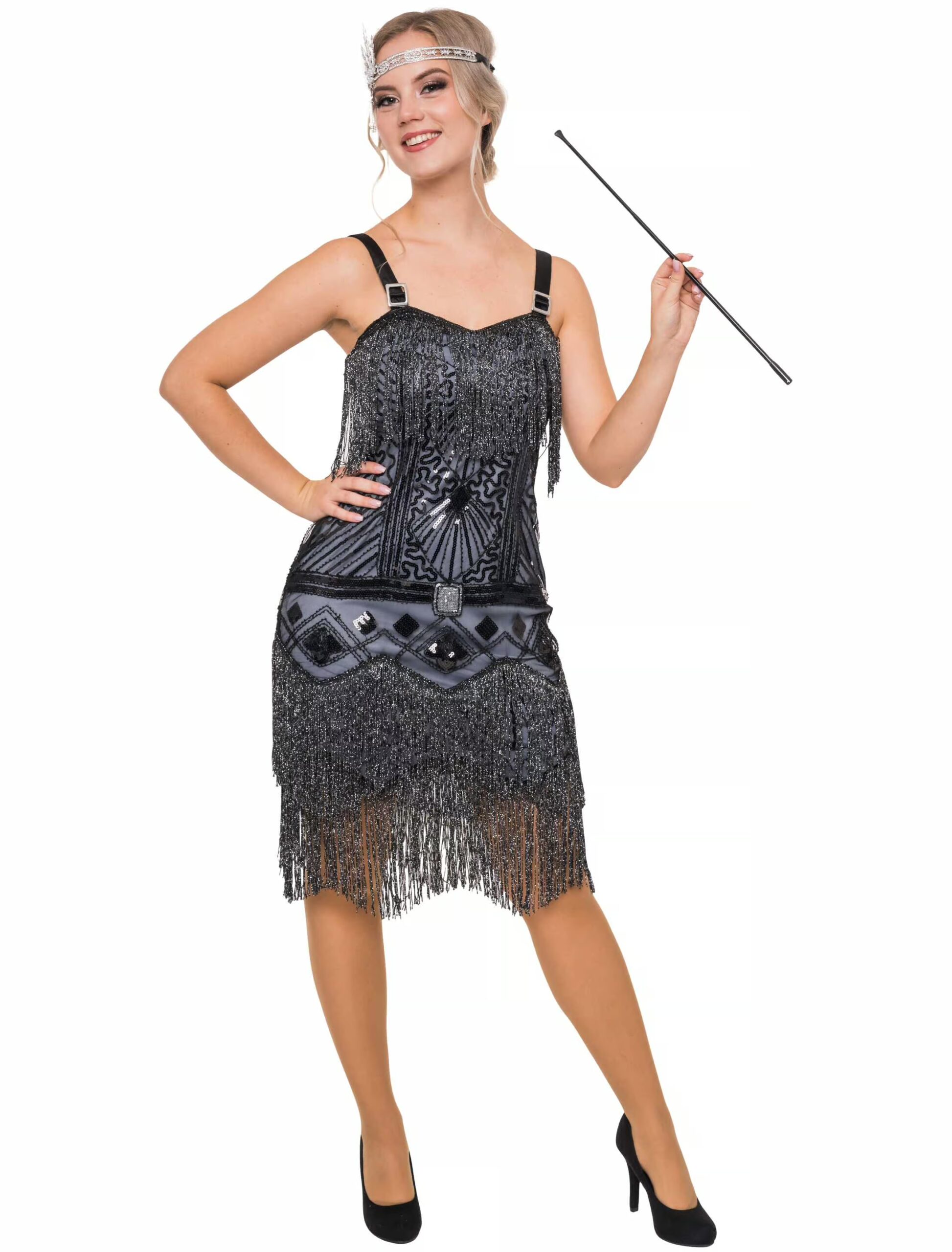 Bist du bereit, die Goldenen Zwanziger wiederaufleben zu lassen? Mit unserem eleganten 20er Jahre Damenkleid wirst du zur wahren Flapper-Queen! Die glamourösen Details, die funkelnden Akzente und der typische Schnitt machen dich zum Star jeder Motto-Party – oder lassen dich einfach wie aus einem Filmset von The Great Gatsby wirken. Dieses Kleid schreit förmlich nach Charleston, Champagner und einer Nacht voller Glanz und guter Laune. Ob auf der Tanzfläche, beim Dinner oder einfach beim Posieren für die besten Fotos des Abends – du wirst wie eine Diva aussehen und dich auch so fühlen. In diesem Kleid bist du mehr als ein Gast – du bist das Highlight des Abends!