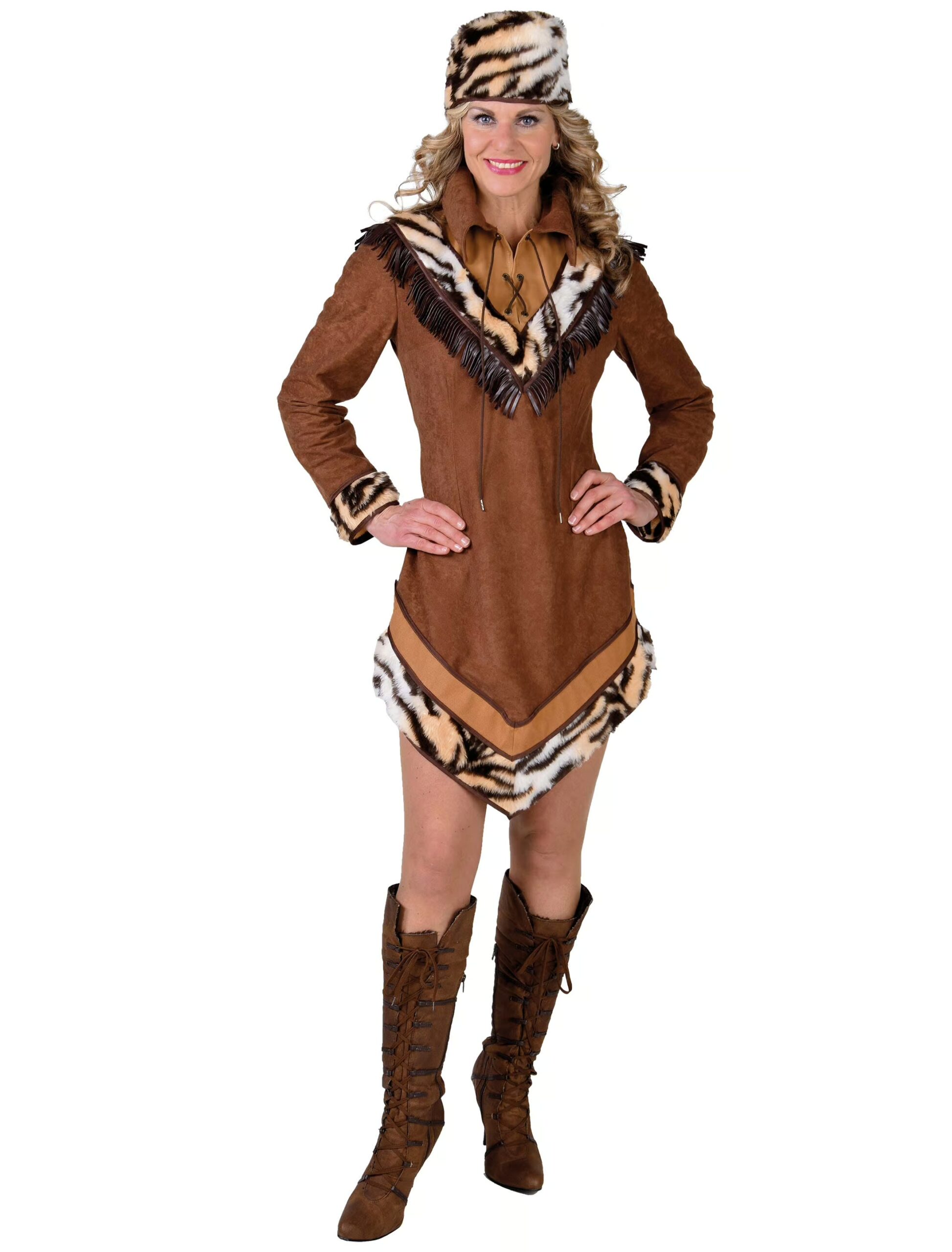 Als Trapperin kannst Du Dich auf die Suche nach der nächsten spannenden Karnevalsparty machen, mit unserem attraktiven Abenteuer Kleid für Damen. Das braune Dress für jede Abenteurerin lässt sich in mehreren Größen bei uns online bestellen und kann beim Karneval mit Lederboots prima getragen werden. Tigerkunstfell und Fransen aus Kunstleder machen das Kleid zu einem echten Hingucker, das Du beinfrei beim Feiern tragen kannst. Die passende Trapper Mütze im Tigerstyle findest Du ebenfalls in unserem Sortiment. Bestelle noch heute dieses coole Damenkostüm und erlebe ein unvergessliches Abenteuer bei nächsten Karnevalsfete. Dschungelcamp Kostüm.