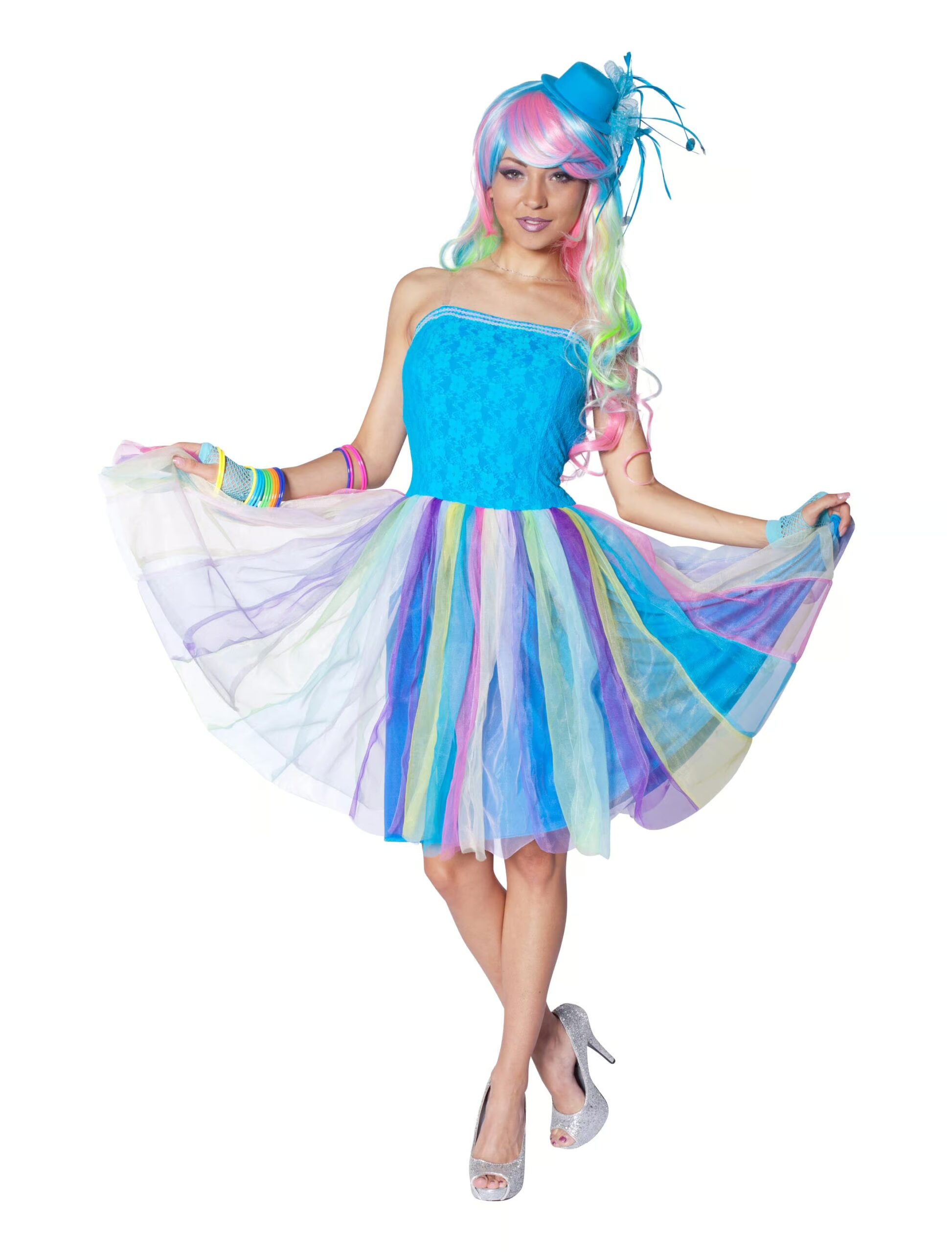 In bunten Pastelltönen und Tüll gekleidet ist klar, dass Du das heutige Candy-Girl bist. Mit diesem Traum von einem Kleid bist Du einfach zum Anbeißen süß. Egal ob Mottoparty oder Karneval, mit diesem Outfit passt Du überall dazu. Allerdings solltest Du schauen, dass Du immer genügend Süßigkeiten bei Dir trägst. Andernfalls wirst Du aus Versehen wirklich einmal angeknabbert. Jetzt braucht Dein Clown Kostüm vielleicht nur noch ein paar kleine Accessoires.