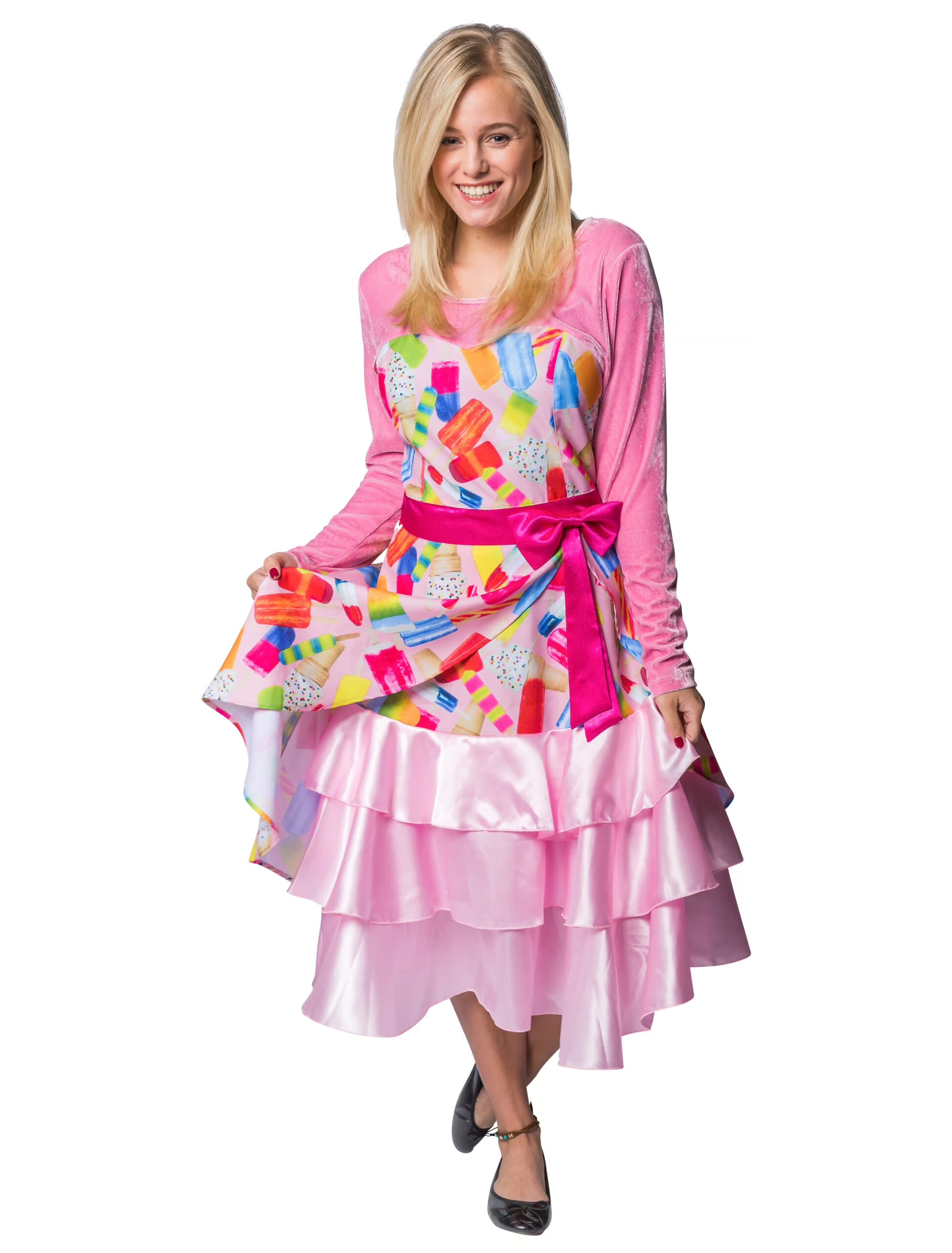 Mach das Thema Candy (Süßigkeiten) zu Deinem Thema an Karneval und Fasching. Unser Candy Kleid Ice Cream darf hier nicht fehlen. Das zuckersüße Kleid mit verschiedenen Eis-Motiven (Stieleis, Waffeleis) ist mit einer Art “Faltenrock” ausgestattet. Eine pinke Schleife ziert am Bauch. Ein Reißverschluss befindet sich am Rücken zum Verschließen. Ein schönes Kostüm für Karneval und Fasching. Das Kleid ist aus 100% Polyester gefertigt.