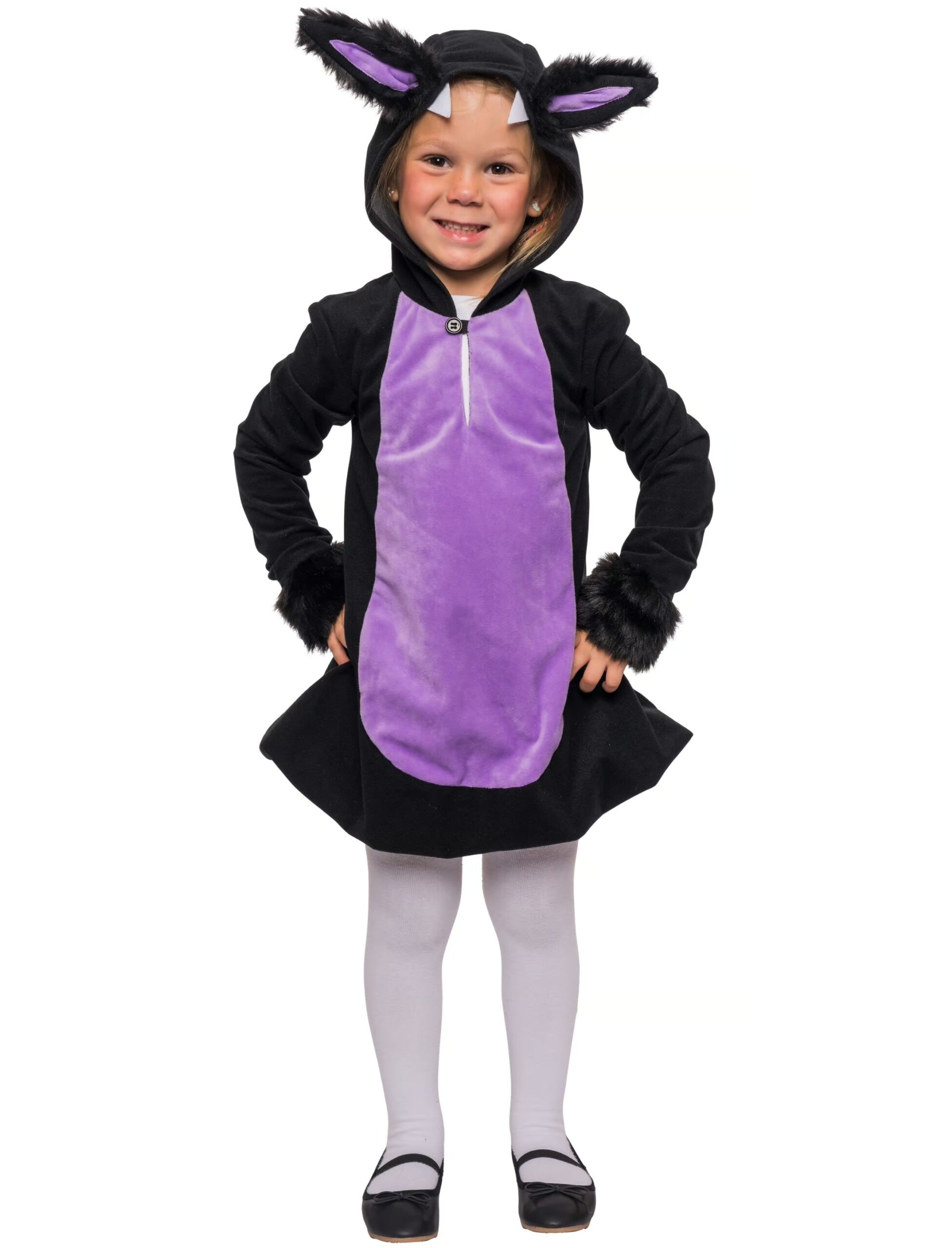 Kleid Fledermaus Plüsch schwarz/lila 152, ideal für Karneval & Fasching
