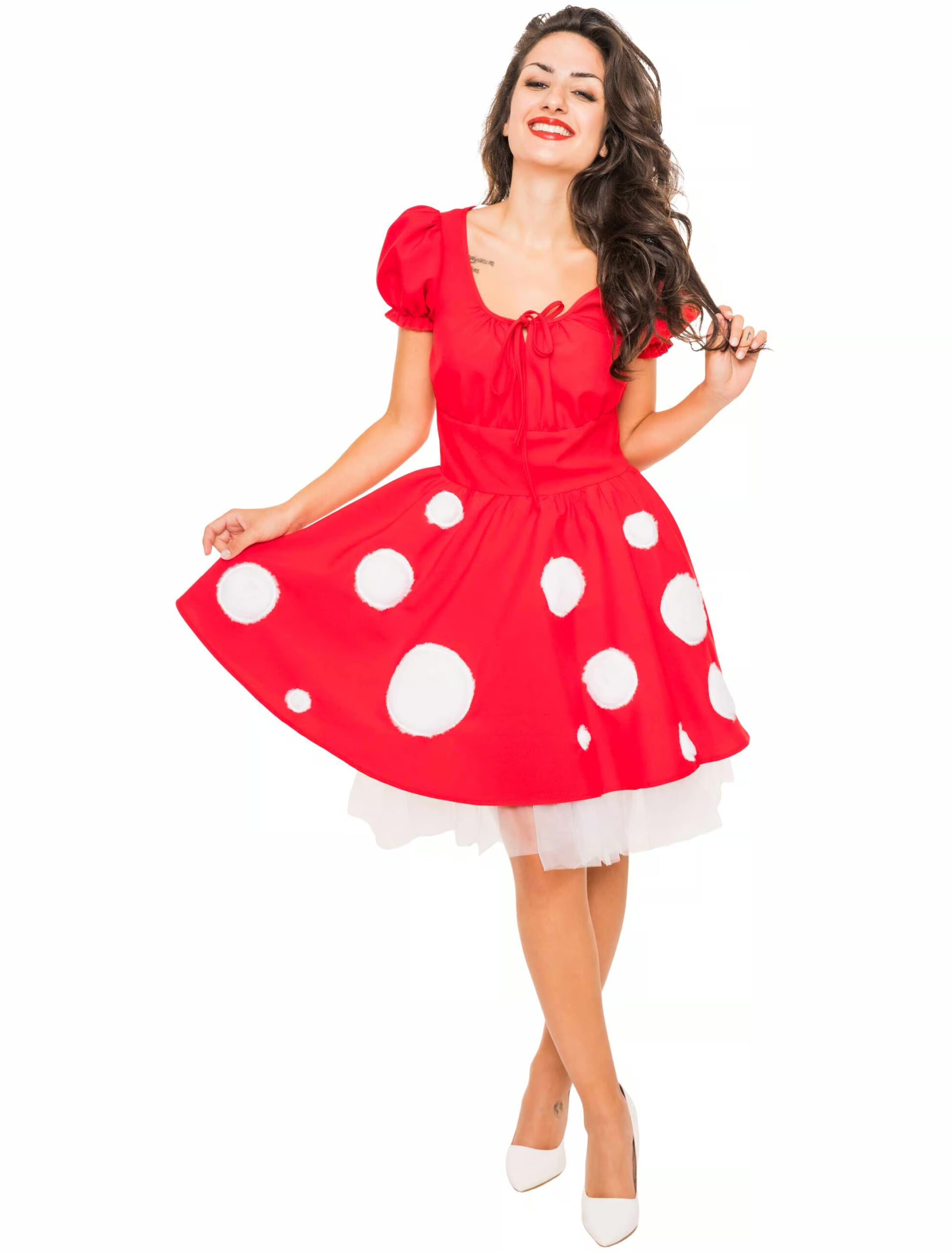 Bist du bereit, die Welt ein bisschen märchenhafter zu machen? Mit unserem Fliegenpilz Kleid wirst du zur niedlichsten Bewohnerin des Zauberwaldes! Ob für Karneval, eine Motto-Party oder einfach, weil dir nach ein bisschen Pilz-Zauber ist: Dieses Kleid bringt garantiert gute Laune. Obenrum ist das Kleid schlicht und einfarbig gehalten, damit dein Rock so richtig strahlen kann. Wippende Punkte inklusive, perfekt für eine Runde Drehen und Tanzen. Kombiniere das Kleid mit einem frechen Hut, einer Strumpfhose oder ein paar Glitzer-Accessoires, und schon bist du der Star unter den Pilzen. Wer weiß, vielleicht wirst du ja auch zur Glücksbringerin des Abends? Witzig, wunderbar und voller Punkte – dein märchenhaftes Highlight!