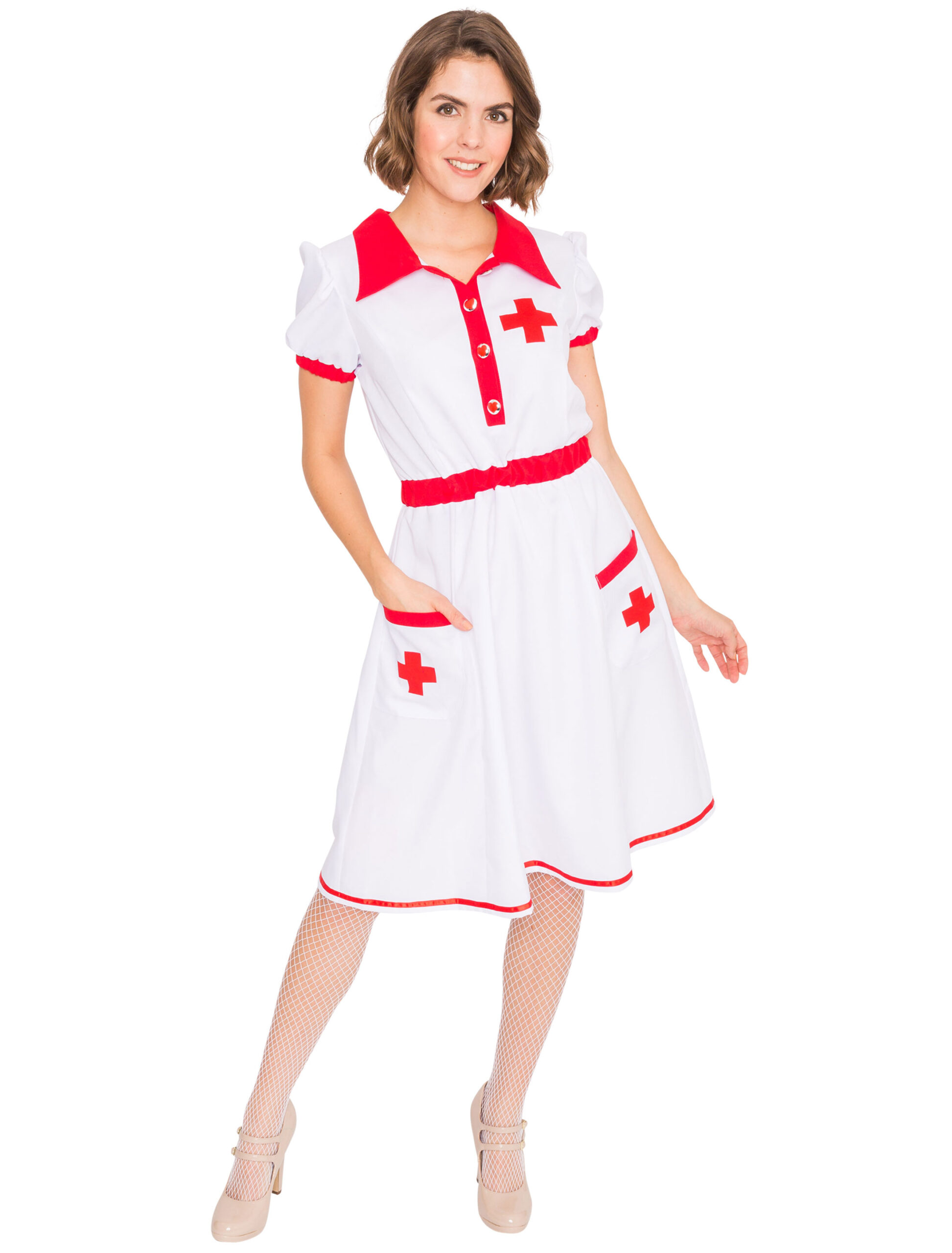 Wenn Du gerne Pillen verteilst und Spritzen setzt, dann ist unser Krankenschwester Kostüm genau das Richtige für die nächste Motto-Party. Das Nurse Kleid in den Farben Rot und Weiß macht Dich zu einer netten Stationsschwester, die weiß wie man kranke Patienten auf Partys wieder fit bekommt. Dazu kannst Du prima ein Stethoskop tragen und auch eine passende Haube, die das Krankenhaus Outfit perfekt abrunden. Das Kleid hat vorne zwei Taschen mit Red Cross Symbol, in denen Du nützliche Utensilien für die Party verstauen kannst. Mit diesem Dress ist Dir der Flirt mit dem Chefarzt sicher.