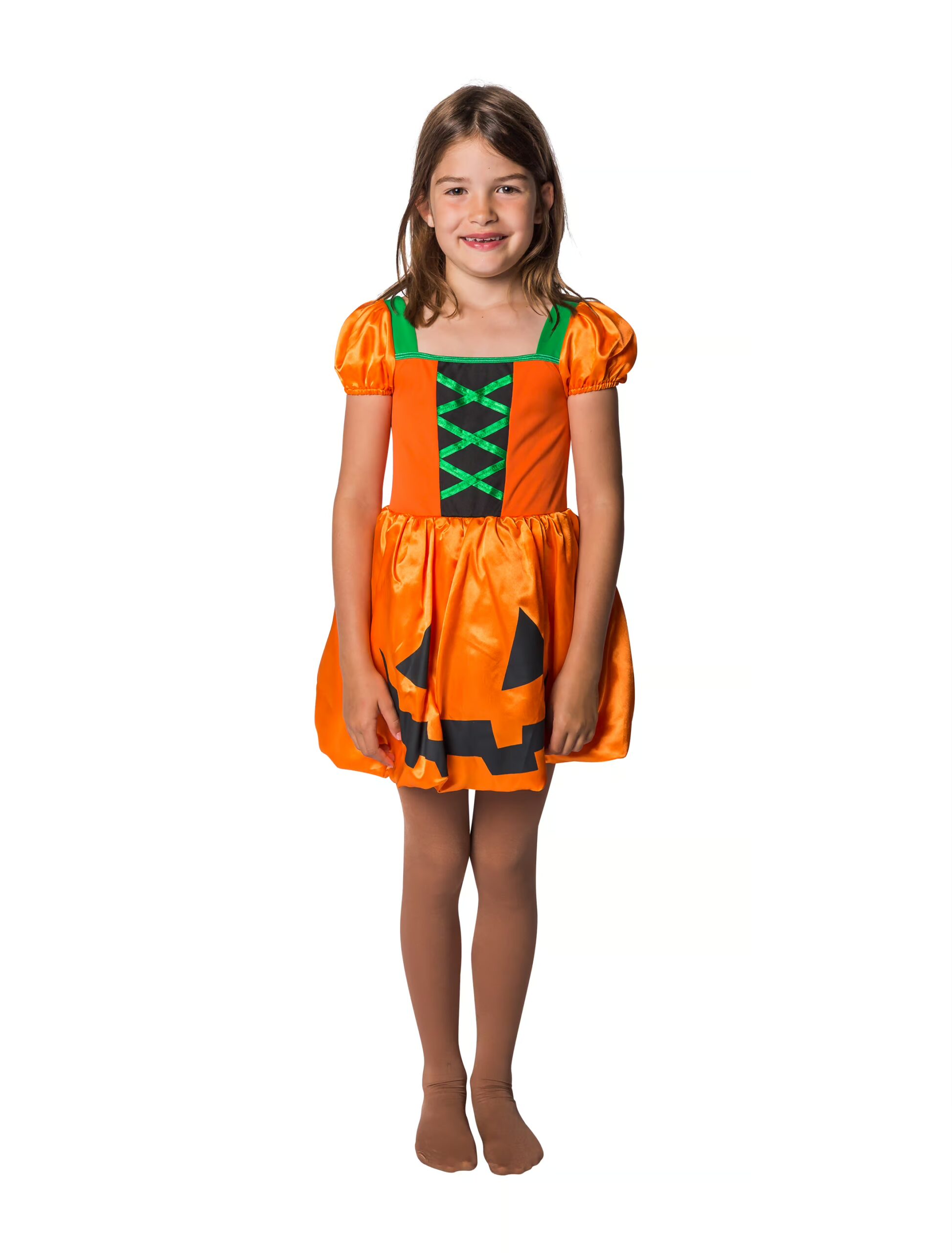 Ihr seid zu einer Halloweenparty eingeladen und sucht noch eine süße, schaurige Verkleidung für Eure Tochter? Gar kein Problem! Unser Kürbis Kleid für Kinder in Orange darf hier nicht fehlen. Der Stoff des Ballonkleides ist elastisch und besitzt kurze Puffärmel. Das Oberteil ist mit einem Kürbiskopf bedruckt. Ein schönes Kinderkostüm für die nächste Halloweenparty. Das Kleid ist aus 100% Polyester gefertigt. Fehlt nur noch die richtige Schminke und eine schöne Kopfbedeckung.