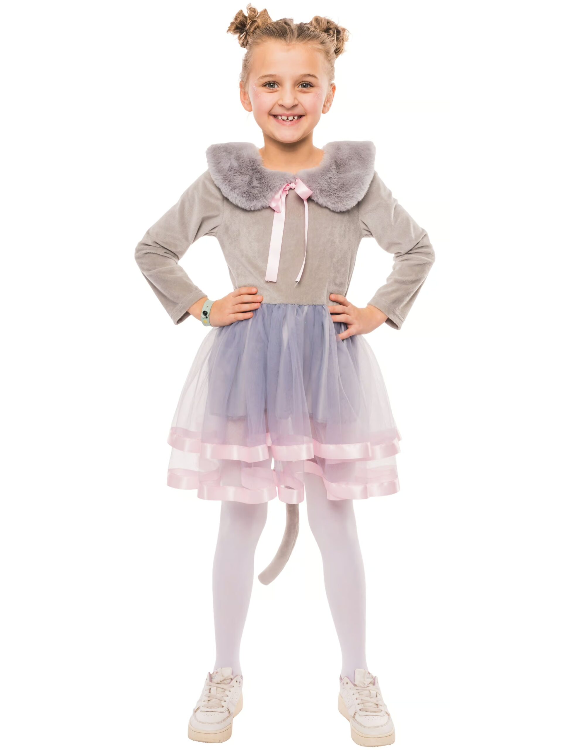 Kleid Mäuschen mit Schleife grau 116, ideal für Karneval & Fasching
