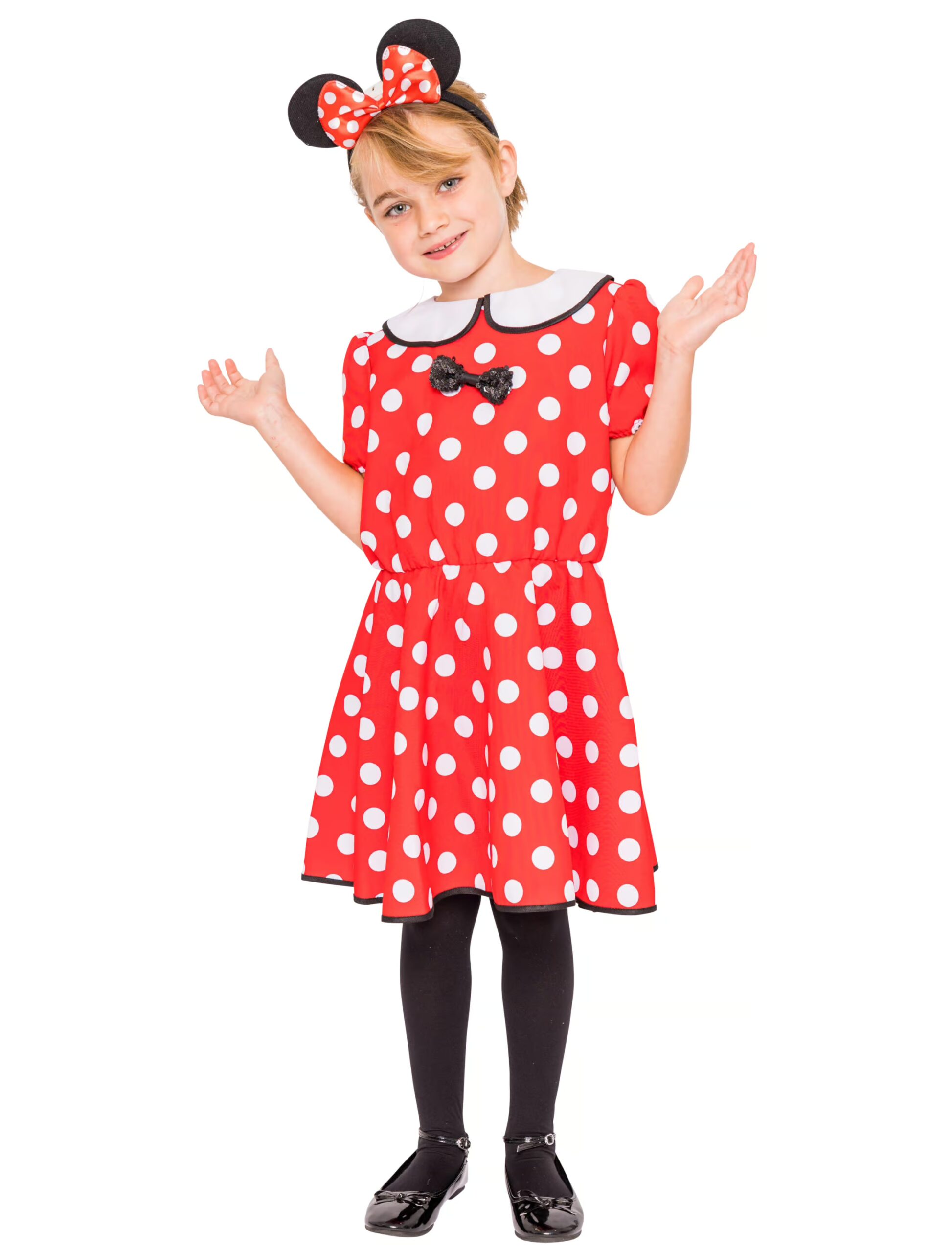 Ganz entzückend ist das hübsche, taillierte, rot-weiße Kinderkleid Maus aus Polyester, mit dem Du aus Deinem kleinen Liebling ein bezauberndes, süßes Mäuschen machen kannst, das zum Kindergeburtstag und zum Fasching alle Blicke auf sich zieht und den Anwesenden ein Lächeln ins Gesicht zaubert. In diesem knielangen, hübschen, weißgepunkteten, roten Kleid mit den aparten Puffärmelchen, dem Knopfverschluss im Nackenbereich, dem weißen, schwarz eingefassten Kragen und Rocksaum sowie der dekorativen schwarzen Schleife und den passenden Mäuseöhrchen aus unserem Shop ist Deine Kleine das lieblichste Mäusekind auf der Welt, auf das Du mächtig stolz sein kannst.