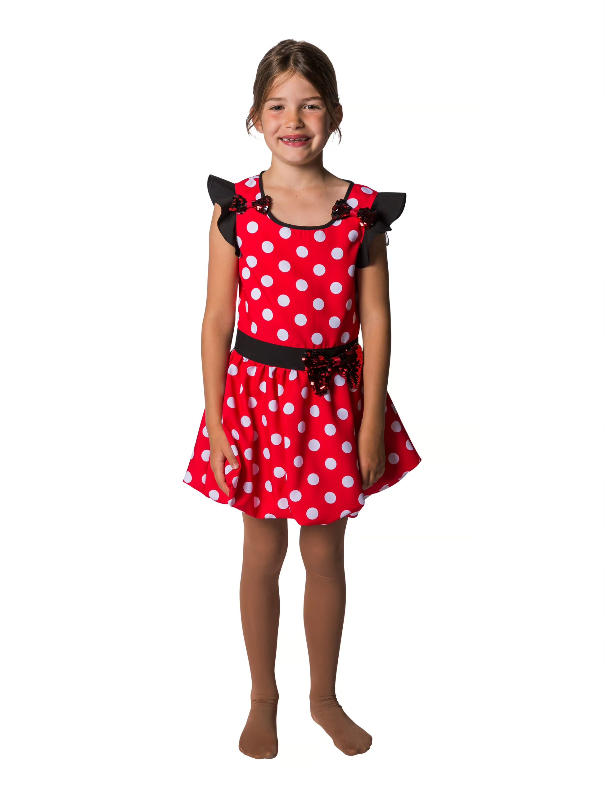 Du bist auf der Suche nach einem Kleid für ein süßes Minnie Maus-Kostüm? Unser Kleid Mausi für Kinder darf hier nicht fehlen. Das Ballonkleid ist mit einem Reißverschluss am Rücken versehen. Geschmückt ist das Kleid oben mit zwei kleinen roten Pailletten Schleifen sowie eine größere rote Pailletten Schleife am Bauch. Die Schleifen sind angenäht. Ein schönes Kostüm für Karneval und Fasching. Das Kleid ist aus 100% Polyester gefertigt.