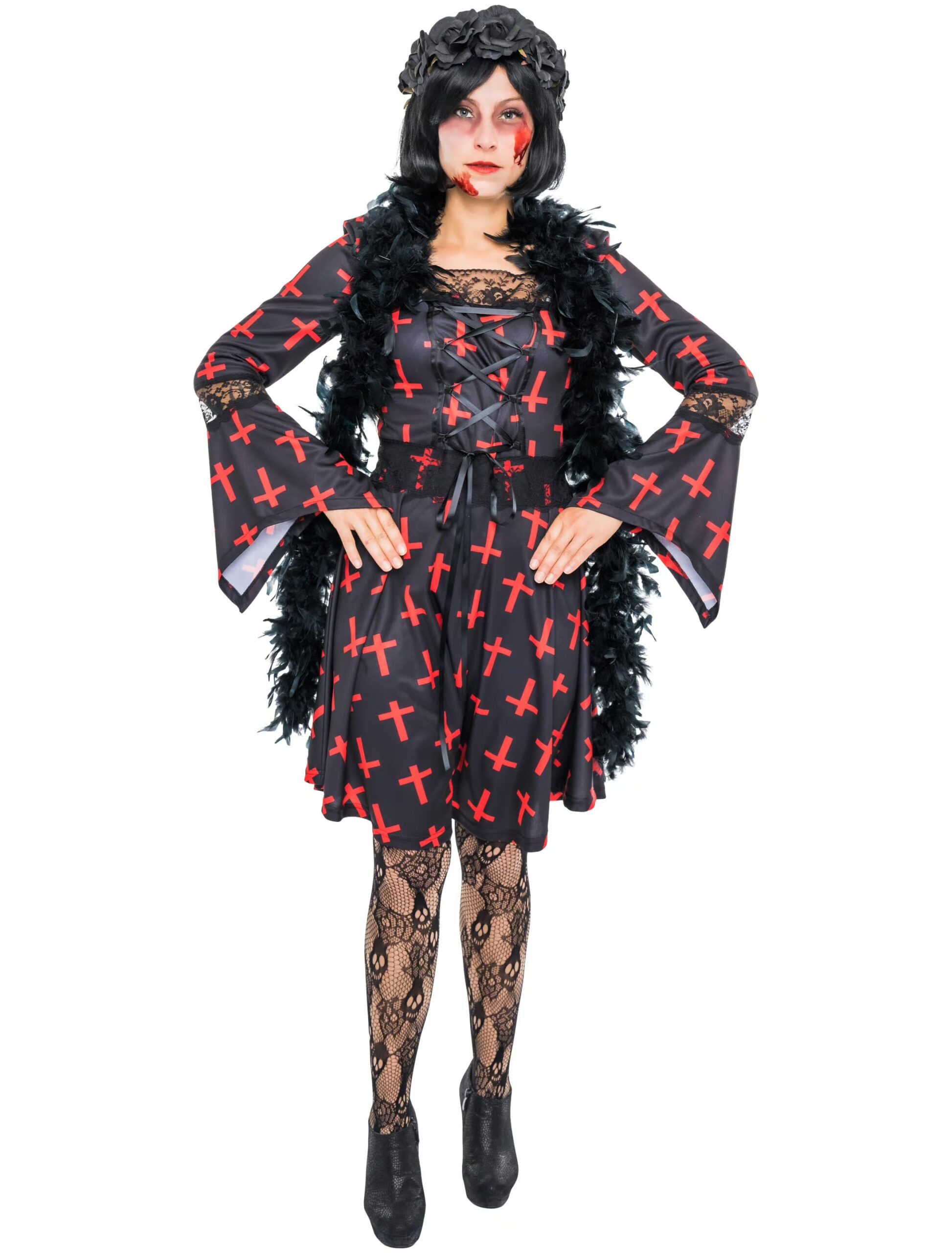 Kleid mit Kreuzen Damen schwarz/rot L