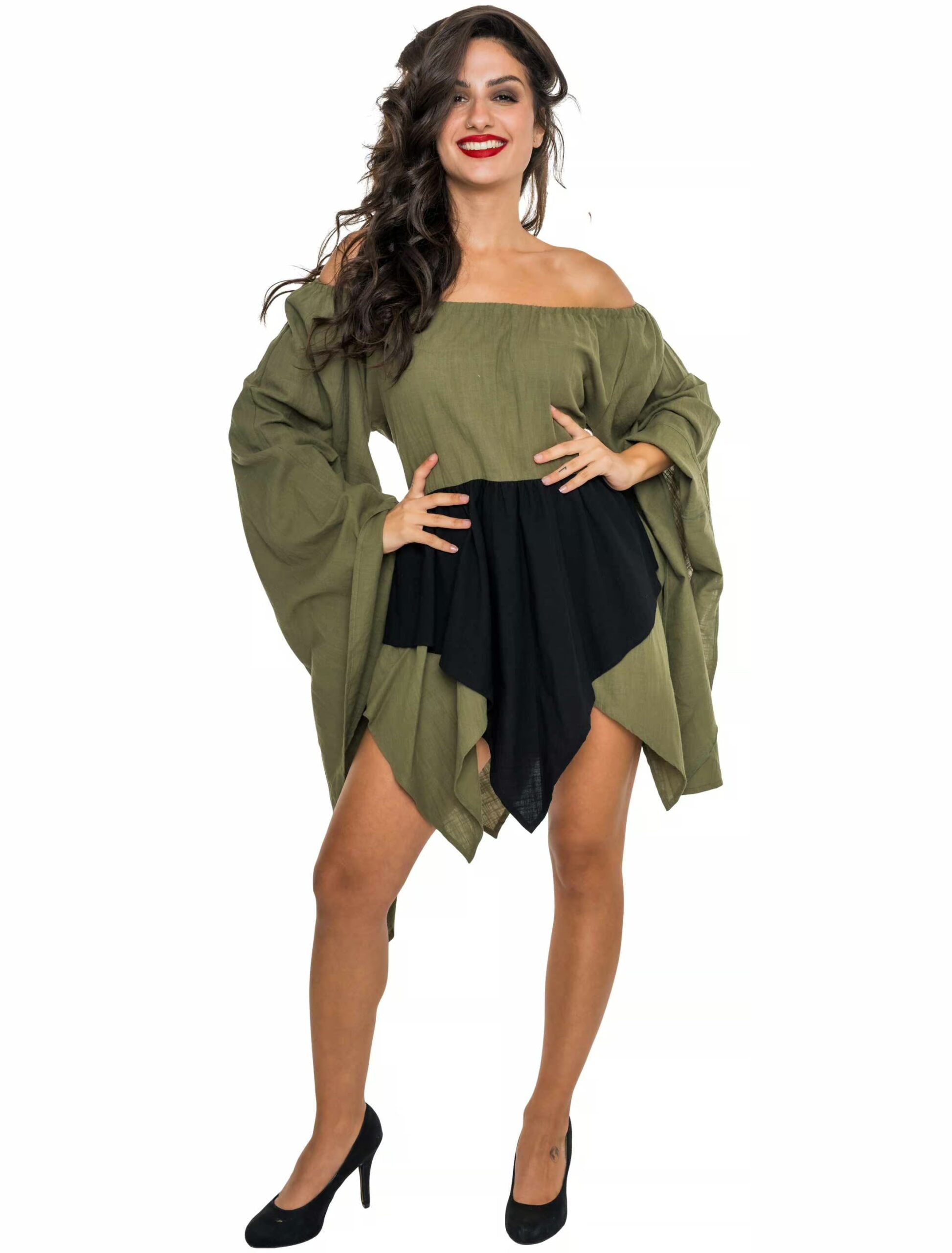 Mit unserem Robin Kleid wirst du zur stylischsten Heldin des Sherwood Forest. Das Kleid vereint Abenteuer und Eleganz: Schulterfrei, um deinen Look wild und doch feminin zu halten, und stylisch genug, um allen klarzumachen, dass du es ernst meinst – auf der Tanzfläche oder bei deinem nächsten Raubzug. Die Details im typischen Robin-Stil sorgen dafür, dass du authentisch, aber dennoch unwiderstehlich modern aussiehst. Egal ob auf der Kostümparty oder im Sherwood Forest: Du wirst garantiert nicht unbemerkt bleiben! Mit diesem Outfit bist du nicht nur eine legendäre Heldin, sondern auch die coolste Banditin weit und breit. Frech, furchtlos und absolut unwiderstehlich – dein Look für wilde Abenteuer!