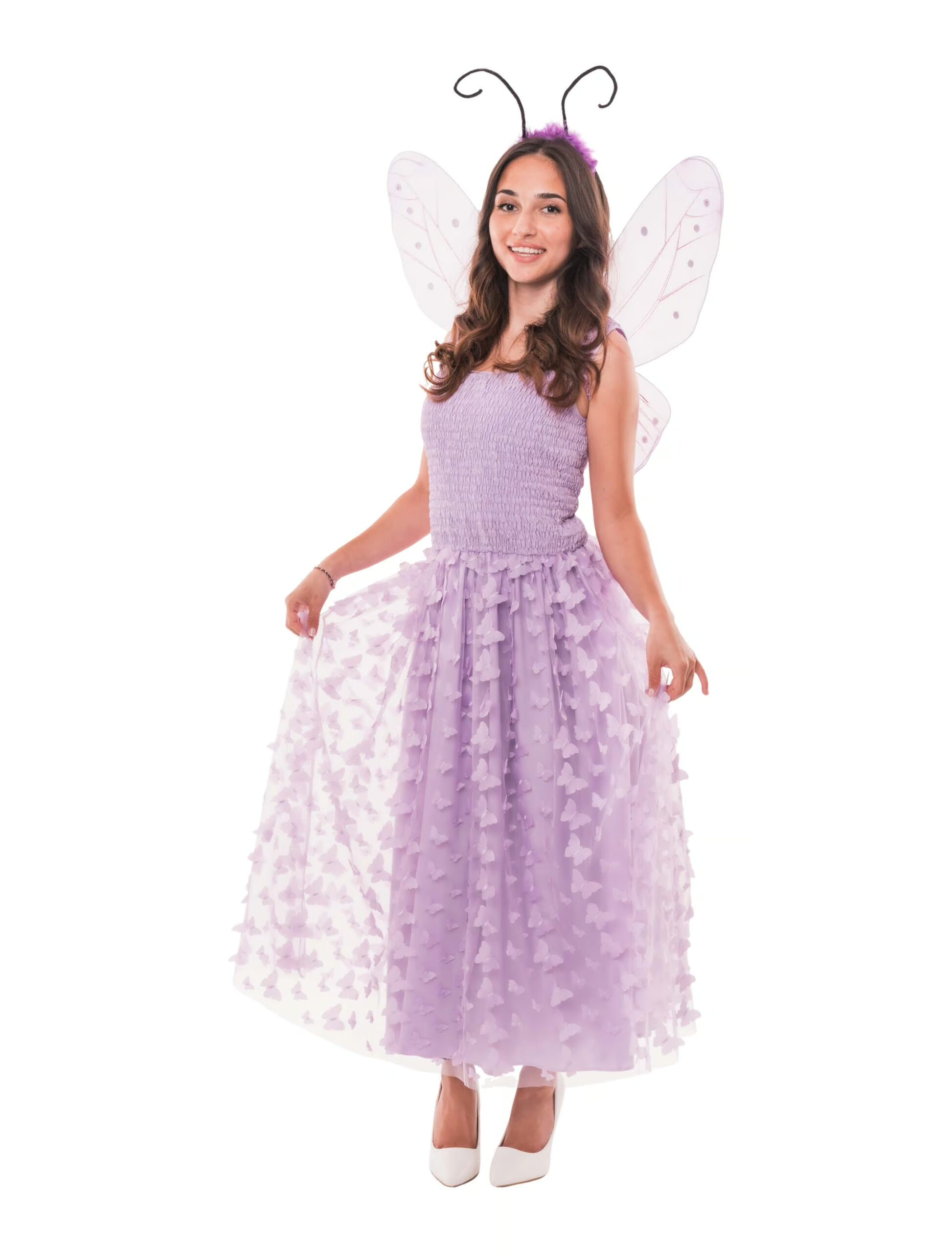 Unser Kleid Schmetterling verleiht dir einen märchenhaften Auftritt. Das Oberteil ist elastisch und sorgt für eine bequeme Passform. Der Rock besteht aus Tüll, der von unzähligen kleinen Schmetterlingen geschmückt ist. Unter dem Tüll befindet sich ein zusätzlicher Unterrock, der für Blickdichte sorgt und das Kleid zugleich voluminöser macht. Ob Karneval, Mottoparty oder Sommerfest – mit unserem Schmetterlingskleid flatterst du stilvoll durch jede Feier!
