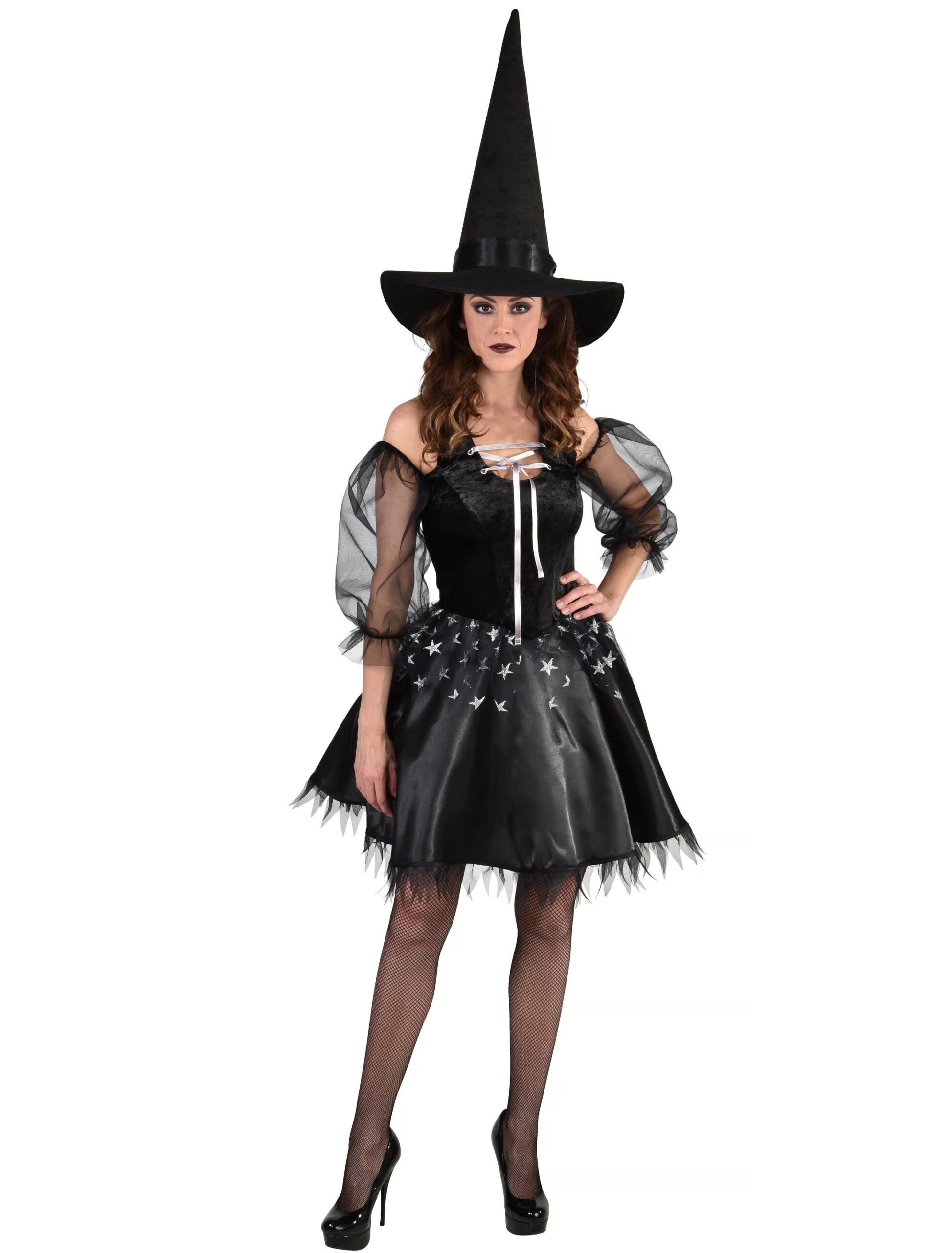 Kleid sexy Hexe mit Sternen Damen schwarz XL, ideal für Karneval & Fasching