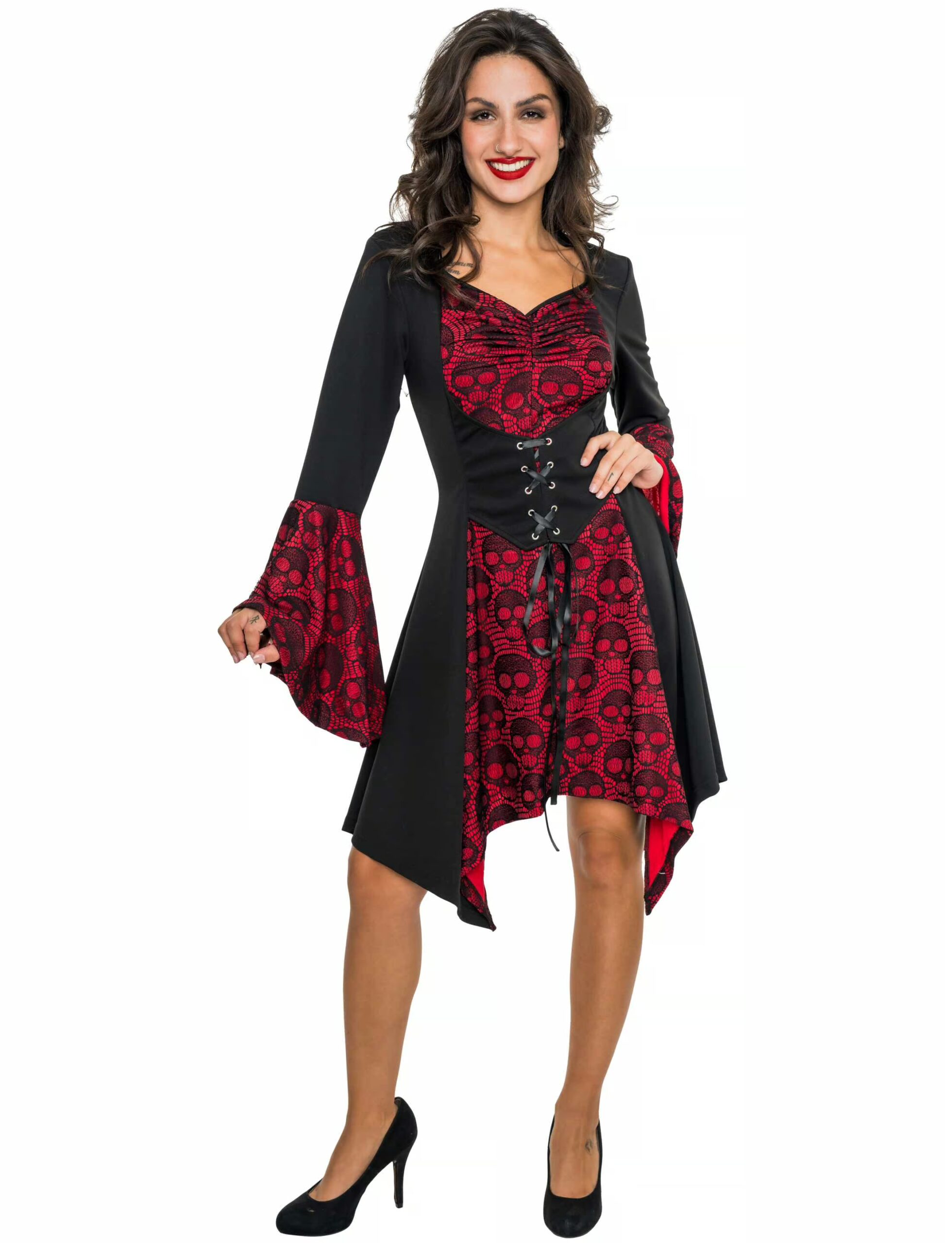 Bring ein bisschen düsteren Glamour in die Party – Mit unserem Totenkopf Damen Kleid mit Korsett wirst du zur Königin der Nacht – rebellisch, verführerisch und mit einem Hauch von Gefahr. Perfekt für Halloween, Gothic-Partys oder jede Gelegenheit, bei der du zeigst, dass du es drauf hast! Kombiniere es mit hohen Stiefeln, Netzstrümpfen oder ein paar düsteren Schmuckstücken, und schon bist du bereit, alle Blicke auf dich zu ziehen. Rebellisch, sexy und ein bisschen düster – das perfekte Kleid für Ladies, die keine Angst haben, aufzufallen!
