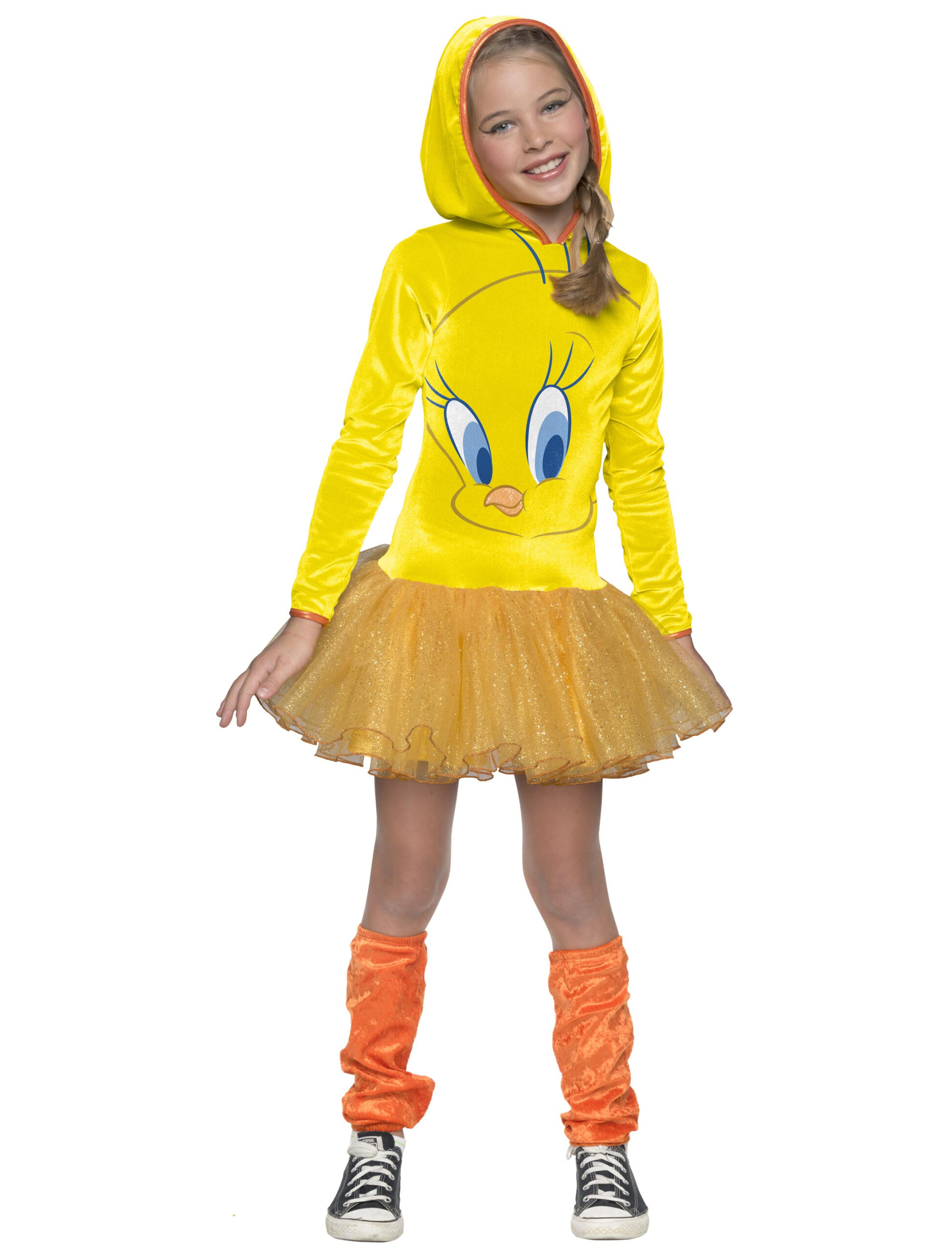 Du kennst alle Folgen aus der Trickfilmserie Looney Tunes in- und auswendig? Dein Lieblingscharakter war immer das süße Küken Tweety? Mit diesem Kostüm hast Du die Möglichkeit Dich schnell und wirkungsvoll auf der kommenden Karnevals- oder Mottoparty als knallgelbes Küken zu verkleiden. Das Kinder Kostüm besteht aus einem gelben Kleid mit Tweety-Aufdruck, einer Kapuze und einem goldenen Tüllrock. Die orangenen Stulpen, die zum Kostüm gehören, machen Deinen Tweety-Look perfekt! Bei dem Kostüm handelt es sich um offiziellen Warner Bros. Looney Tunes Merchandise!