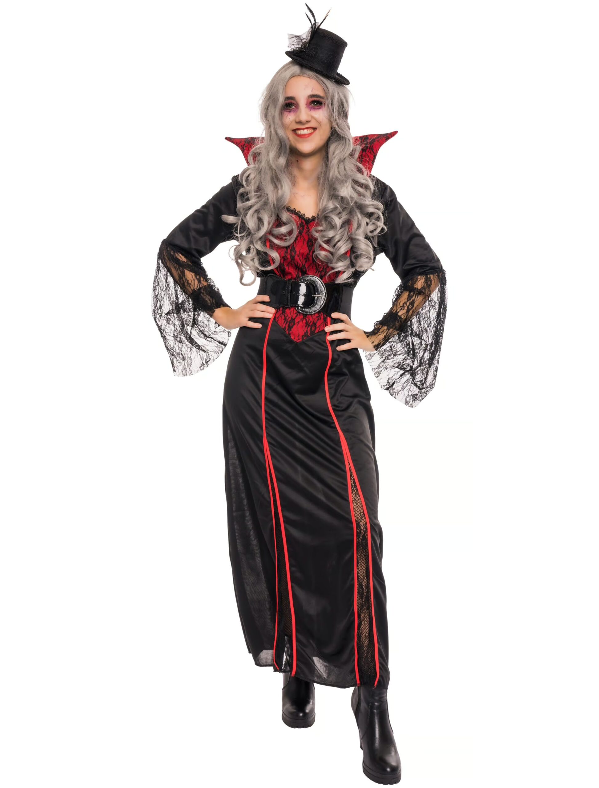 Kleid Vampir mit Stehkragen Damen schwarz/rot 4XL