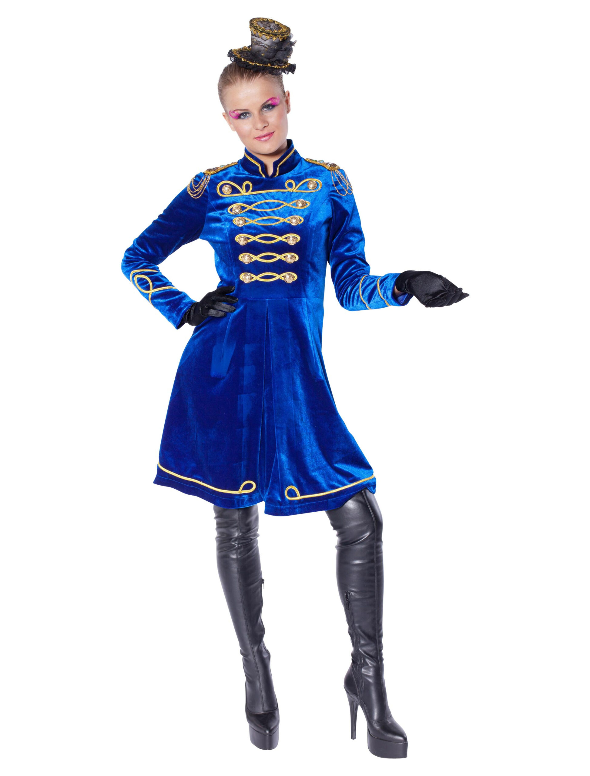 Mit der Peitsche in der Hand kannst Du problemlos alle im Griff halten. Einen großen Zirkus zu leiten ist wahrlich nicht einfach und bedarf jeder Menge Autorität. Die bringst Du zwar schon von Haus aus mit, aber dieses blaue Kleid lässt wirklich niemanden mehr an Dir zweifeln. Mit goldenen Stickereien besetzt macht er jedem direkt deutlich, dass er vor der Zirkusdirektorin höchstpersönlich steht. Vielleicht gewinnst Du so auch ein paar neue Mitglieder für Deine Manege. Das perfekte Kostüm zu Karneval.