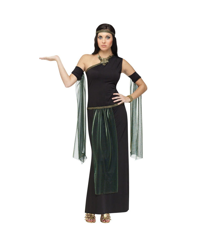Nil Königin Kostüm Abendkleid der wunderschönste Herrscherin von Ägypten Verkleide Dich mit unserem Nil Königin Kostüm zu Fasching und Du wirst auf den ersten Augenblick garantiert mit Kleopatra verwechselt werden. Das Nil Königin Kostüm ist ein bodenlanges, schwarzes Frauenkleid. Das Königin des Nils Kostüm hat noch ein Stirnband und ein Paar schwarze Armbänder mit langen Schleifen. Die Robe des Nil Königin Kostüm mit einem Träger lässt einen Schulter frei. Zudem ist das Kleopatra Kleid mit einer Bordüre und mit einem grünen Einsatz verziert. Lieferumfang: 1x Nil Königin Kostüm bestehend aus einer Robe, einem Stirnband und zwei Armbänder Größe: S/M = 36/38, M/L = 40/42 Farbe: Schwarz, grün, Gold Material: 100% Polyester Größe: S/M 36/38 M/L 40/42 Brustumfang: ca. 81-93 cm ca. 91-102 cm Taillenumfang: ca. 61-69 cm ca. 71-80 cm Hüftumfang: ca. 84-94 cm ca. 91-104 cm Körpergröße bis.: ca. 170 cm ca. 180 cm Achtung: Der Artikel ist ein Kostüm für Erwachsene und kein Spielzeug. Nicht für Kinder unter 3 Jahren geeignet. Kann Kleinteile enthalten, die verschluckt werden können – Erstickungsgefahr. Von Feuer und offenen Flammen fernhalten.