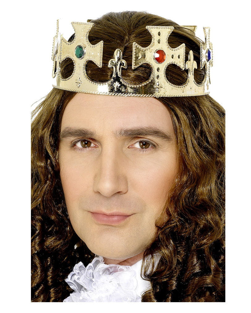 Mit Schmucksteinen verzierte königliche Krone Königliches Kostümzubehör für Halloween und Fasching Die Mit Schmucksteinen verzierte königliche Krone gebührt wahrlich nur einem König uhd sieht sehr edel aus. Die Königskrone ist seit jeher das Symbol des Adels und des von Gott ausgewählten Herrschers. Die Krone rundet dein Kostüm als Herrscher des Landes ab. Die goldene, größenverstellbare Krone aus Kunststoff ist mit großen Kreuzen, die mit blauen, grünen und roten Schmucksteinen bestückt sind, verziert. Zwischen den Kreuzen ist die französische Lilie auf der Krone zu sehen, die nur von französischen Königen oder Personen, die sich um den König verdient gemacht haben, werden darf. Lieferumfang: 1 x Mit Schmucksteinen verzierte königliche Krone Farbe: gold Größe: Einheitsgröße Material: Kunststoff Die Krone macht dich zum König für eine Nacht. Achtung: Der Artikel ist ein Kostümzubehör für Erwachsene und kein Spielzeug. Nicht für Kinder unter 3 Jahren geeignet. Kann Kleinteile enthalten, die verschluckt werden können – Erstickungsgefahr. Von Feuer und offenen Flammen fernhalten.