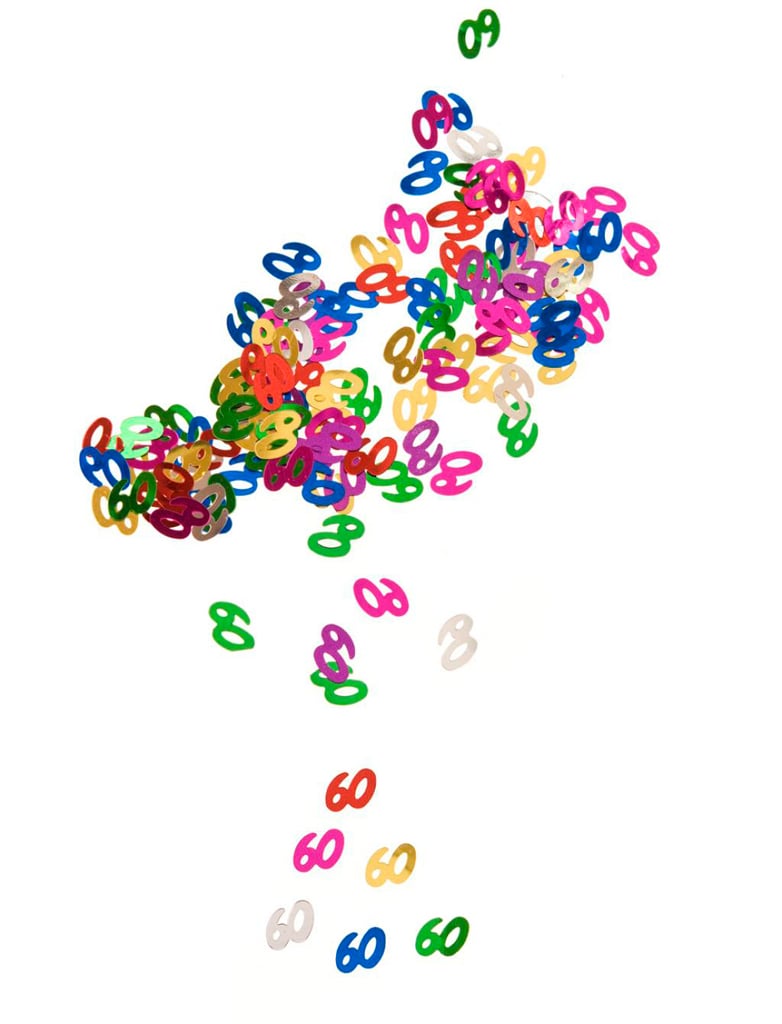 Eine schmucke Tischgestaltung ist das A und O jeder guten Partydekoration und darf natürlich gerade bei dem besonderen Ehrentag des Geburtstagskindes nicht fehlen. Wenn Du nach einer effektvollen Deko Ausschau hältst, die sich auch in der begrenzten Zeit, bis die Überraschungsparty steigt, schnell aufbauen lässt, sind die bunten 60 Konfetti eine perfekte Wahl. 15 Gramm bunte 60 Konfetti reichen auch für die große Festtafel und machen jedem Gast sofort klar, welche Person heute im Zentrum der Aufmerksamkeit steht.