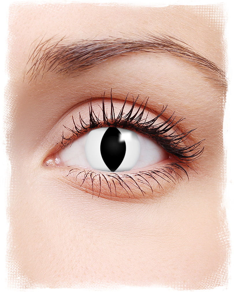 Kontaktlinsen mit Katzenauge als Motiv Schwarz / weiße Katzenaugen als effektvolle Partylinse Die coolen Effektlinsen mit Katzenauge als Motiv eignen sich hervorragend um dir eine andere Augenfarbe zu geben. Bedruckte Motiv und Spaßlinsen sind besonders für Halloween und Karneval ein toller Partyspaß. Bis zu 3 Monate anwendbar bei entsprechender Pflege. Du erhältst von uns Kontaktlinsen, die ungeöffnet ein Haltbarkeitsdatum von mehreren Jahren haben. Diese sind für helle und dunkle Augen geeignet und haben eine sehr starke Deckkraft. Sehr gute Qualität und sehr guter Tragekomfort. Hergestellt im Sandwich-Verfahren. Dadurch gelangen garantiert keine Farbpartikel ins Auge. Nicht im Straßenverkehr geeignet! Zusatzinformationen (Katzenauge Kontaktlinsen): Inhalt: 2 Stück farbige Linsen im Fläschchen Art: weiche Kontaktlinsen Material: 58% Polyhema, 42% Wassergehalt Radius (BC): 8.60 mm Durchmesser (DIA): 14.5 mm Ohne Dioptrin ( ohne Sehstärke ) Bis zu 3 Monate anwendbar, bei entsprechender Pflege KONTAKTLINSEN Pflegehinweise für Ihre Kontaktlinsen Sie haben sich mit den kosmetischen, weichen Effektkontaktlinsen für ein Qualitätsprodukt entschieden, das nach internationalen Standards gefertigt wurde. Um sicherzustellen, dass Sie Ihre Linsen sicher und bequem bei bester Sicht tragen können, sollten Sie die folgenden Hinweise sorgfältig lesen und zu jeder Zeit beachten. Bitte bewahren Sie diese Hinweise auf, um bei eventuellen Nachfragen später noch einmal nachschlagen zu können. Falls Sie zum ersten Mal Kontaktlinsen verwenden, sollten Sie die Tragezeit der Linsen langsam steigern. Tragen Sie die Linsen am ersten Tag nicht länger als 4 Stunden und verlängern Sie die Tragezeit täglich um 2 Stunden. Länger als 8 Stunden am Stück sollten die Linsen aber niemals getragen werden. Die Linsen sind des weiteren nicht für Personen unter 18 Jahren geeignet. Anwendungshinweise Berühren Sie Ihre Linsen nur mit sauberen, trockenen Händen. Achten Sie beim ersten Öffnen der Verpackung darauf, dass die Linse intakt und komplett von Flüssigkeit umgeben ist. Benutzen Sie die Linse nicht, wenn sie ausgetrocknet oder beschädigt ist. Die Linsen sind für einen Tragezeitraum von drei Monaten konzipiert und sollten danach dementsprechend entsorgt werden. Die Linsen sind zwingend vor dem ersten Gebrauch aus der Originalverpackung heraus zu nehmen und für mindestens 4 Stunden in frische Kontaktlinsenlösung zu legen. Erst dann ist die Kontaktlinse nach Anleitung einsetzbar. Bitte beachten Sie genau weitere Pflegehinweise. Einsetzen 1. Nehmen Sie eine Linse aus der Verpackung. 2. Legen Sie die Linse auf den rechten Zeigefinger und stellen Sie auf der Fingerkuppe fest, ob die Linse richtig herum liegt. 3. Halten Sie Ihr oberes Augenlid mit Ihrem linken Zeige- und Mittelfinger weit geöffnet, während Sie das untere Lid mit Ihrem rechten Mittelfinger geöffnet halten. 4. Platzieren Sie die Linse auf Ihrem Auge. 5. Wiederholen Sie die Schritte 1.–4. mit der anderen Linse. Herausnehmen Schauen Sie nach oben und halten Sie Ihr unteres Augenlid nach unten. Drücken Sie die Linse mit Daumen und einem Finger leicht zusammen und heben Sie sie dann heraus. Reinigung und Desinfektion Befolgen Sie immer die Anweisungen auf der Flasche Ihrer Kontaktlinsenlösung. Sollten Ihre Linsen einmal austrocknen, sind sie sehr empfindlich und müssen dementsprechend mit äußerster Vorsicht gehandhabt werden. Legen Sie die Linsen dann für mindestens 4 Stunden in frische Kontaktlinsenlösung. Reinigen und desinfizieren Sie Ihre Linsen dann erneut und überprüfen Sie sie sorgfältig auf eventuelle Schäden. Wenn Sie Zweifel an der Unversehrtheit der Linsen haben, suchen Sie Ihren Optiker auf, bevor Sie Ihre Kontaktlinsen wieder tragen. Hinweis: Wir empfehlen, einen Optiker oder Augenarzt aufzusuchen, der Ihnen die sachgemäße Verwendung von Kontaktlinsen genau erklärt und mit Ihnen üben kann. Vorsichtsmaßnahmen Denken Sie stets daran, dass die Gesundheit Ihrer Augen entscheidend für Ihr gutes Sehvermögen ist. Gehen Sie kein Risiko durch Nachlässigkeit oder Eitelkeit ein und halten Sie sich deshalb an die nachfolgenden Tragehinweise. 1. Wir empfehlen Ihnen die Linsen monatlich zu erneuern und täglich zu pflegen. 2. Bei Fragen zur korrekten Handhabung von Kontaktlinsen empfehlen wir Ihnen die Konsultation Ihres Optikers. 3. Benutzen Sie niemals bereits benutzte Kontaktlinsenlösung noch einmal. 4. Befolgen Sie die Anleitung Ihrer Kontaktlinsenlösung bezüglich Lagerzeiten und Behandlungsweise. 5. Entfernen Sie die Linsen und suchen Sie einen Optiker auf, wenn Ihre Augen schmerzen, sich röten, oder brennen, wenn Ihre Augen tränen oder Ihre Sicht durch Lichtreflexe oder Farbfelder gestört ist. 6. Entfernen Sie die Linsen, bevor Sie zu Bett gehen oder sich länger hinlegen. 7. Halten Sie Ihre Fingernägel kurz, weil lange Nägel die Linsen beschädigen können. 8. Tragen Sie die Linsen nicht, wenn Sie in Behandlung bei einem Augenarzt sind bzw. konsultieren Sie Ihren Arzt vorher. 9. Benutzen Sie keinen Speichel, um Ihre Linsen anzufeuchten oder zu reinigen. 10. Tragen Sie Ihre Kontaktlinsen nicht, wenn Sie Augenmedikamente oder Augentropfen verwenden. 11. Tragen Sie niemals Linsen, wenn diese beschädigt oder verkratzt sind oder wenn sie Ablagerungen aufweisen, die sich nicht entfernen lassen. 12. Tragen Sie Augenmake-up nach dem Einsetzen der Linsen auf und entfernen Sie es nach dem Herausnehmen der Linsen. Verwenden Sie möglichst faserfreie, wasserlösliche Augenkosmetika und ölfreie Produkte. 13. Benutzen Sie keine scharfen Haushaltsreiniger, während Sie die Linsen tragen. 14. Verwenden Sie niemals Haushaltsprodukte (wie z.B. Desinfektionsmittel) oder Leitungswasser zur Reinigung Ihrer Kontaktlinsen oder Aufbewahrungsdosen. Sie können Ihren Augen ernsthaft schaden. 15. Tragen Sie die Linsen nicht in verrauchter oder feuchter Umgebung. 16. Halten Sie die Aufbewahrungsdosen der Linsen sauber. 17. G