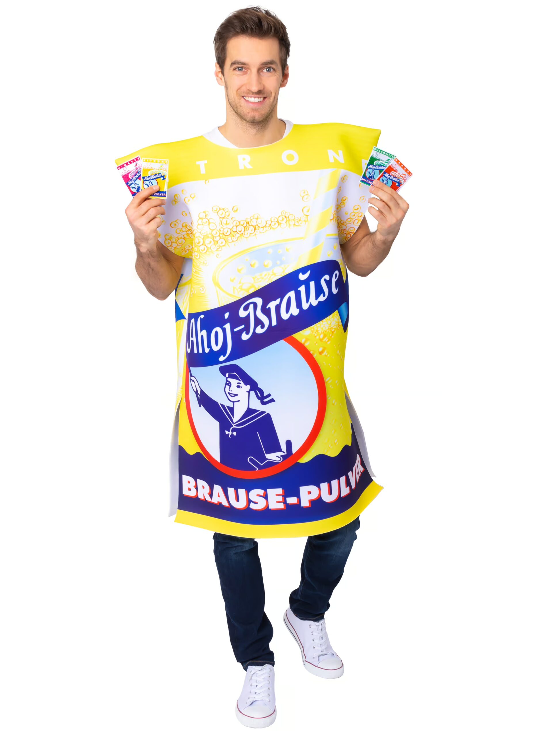 Bei diesem Anblick werden Kindheitserinnerungen wieder wach! Dieses knallige und nostalgische Ahoj-Brause Kostüm ist ein ganz besonderer Hingucker für die kommende Karnevals- oder Mottoparty. Die knallgelbe Verkleidung in Form des beliebten Brause-Pulvers eignet sich perfekt für alle Retro-Fans, die eine Zeitreise in Ihre Kindheit machen möchten. Das Kostüm ist weit geschnitten und lässt sich bequem über Deiner Kleidung tragen. Sowohl in der Front als auch auf der Rückseite ist es mit dem hübschen Ahoj-Brause Logo verziert. Zitronig, fruchtig und prickelnd: So würde man Deine Sorte am besten beschreiben! Exklusiv bei uns. Ahoj-Brause Kostüm Zitrone für Sie und Ihn. Offizielles Merchandise!