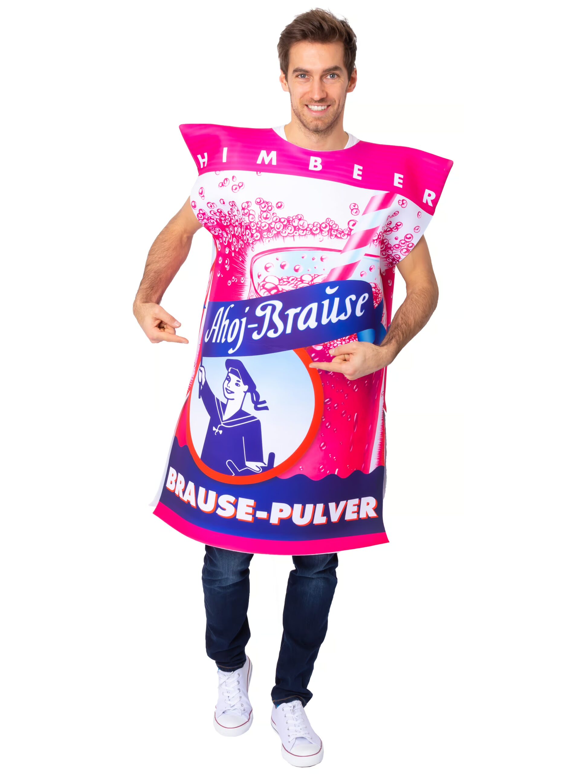 Manche Dingen kommen nie aus der Mode! Dazu zählt zum Beispiel das prickelnde Ahoj-Brause Brause-Pulver, das wir alle aus unserer Kindheit kennen und lieben! Mit diesem extravaganten Kostüm für Damen und Herren drehst Du die Zeit zurück und verwandelst Dich in eine süße Ahoj-Brause mit Himbeergeschmack. Das beidseitig bedruckte, pinke Kostüm mit dem charakteristischen Matrosen-Logo und den Schriftzügen HIMBEERE, Ahoj-Brause und BRAUSE-PULVER kannst Du bequem über Deiner Kleidung tragen. Zu Deiner fruchtigen (Himbeer-)Verkleidung passt besonders gut der Ahoj-Haarreif! Exklusiv bei uns. Ahoj-Brause Kostüm Himbeer für Sie und Ihn. Offizielles Merchandise!