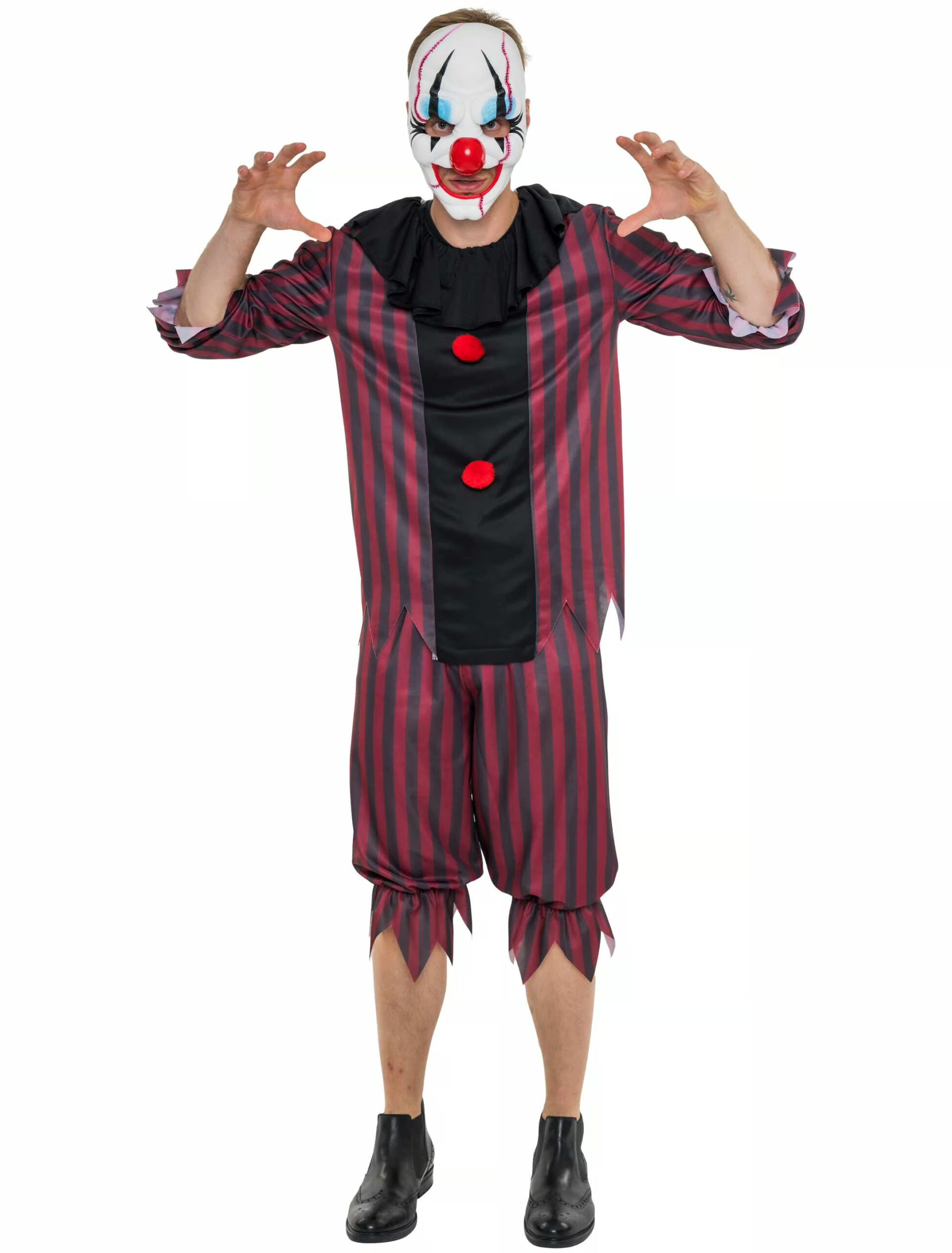 Sei bereit, die Partygäste zum Schaudern zu bringen! Mit diesem Gruselclown Kostüm verwandelst du dich in den unheimlichsten Spaßmacher der Nacht! Das Outfit ist perfekt für Halloween, Mottopartys oder einfach, um deinen Freunden einen Schrecken einzujagen – Für schaurig-lustige Nächte! Das schaurige Design sorgt garantiert für einen tollen Auftritt – und vielleicht auch für ein paar schockierte Gesichter. Also hol dir deine Maske und mach dich bereit für jede Menge schaurigen Spaß!