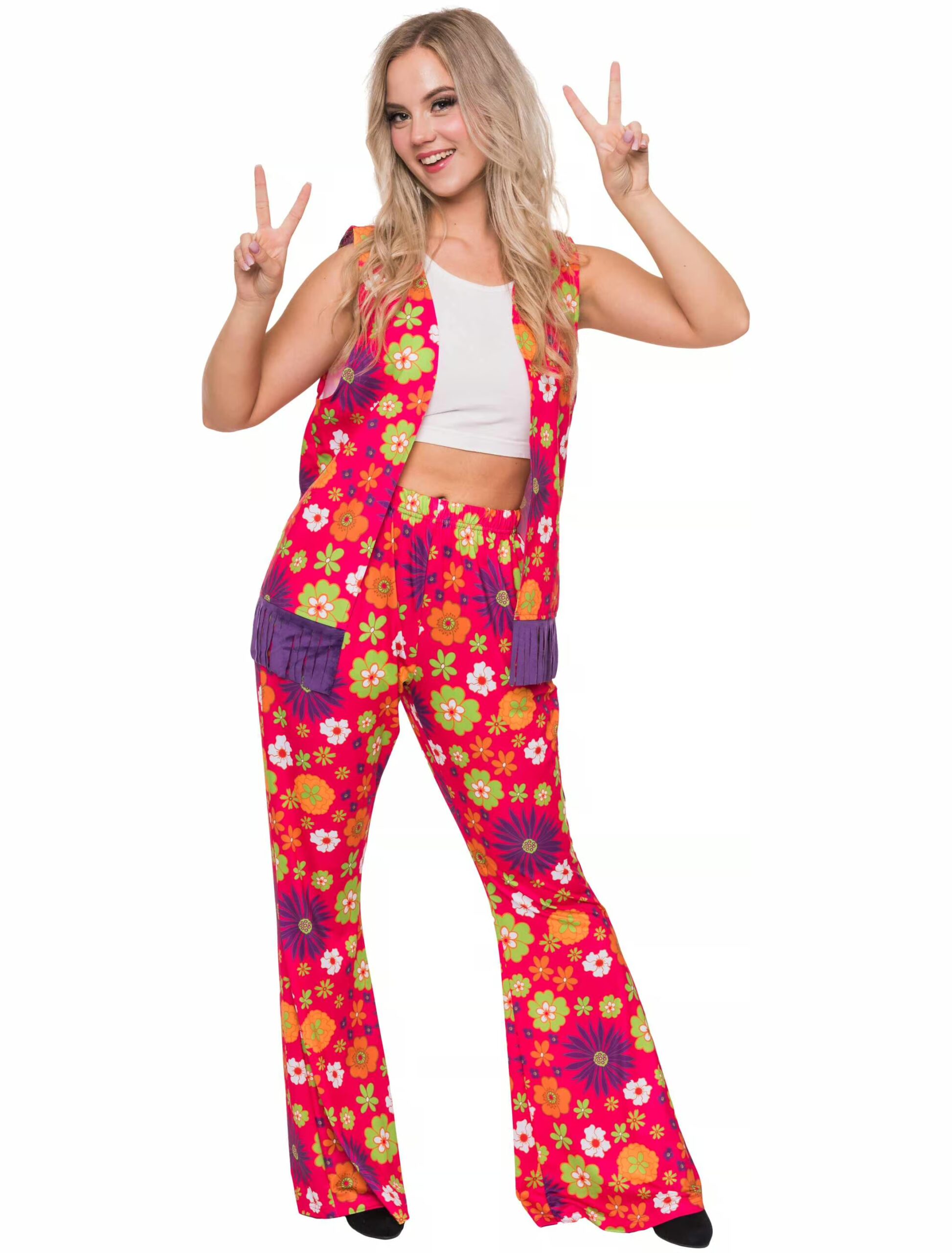 Flower Power – Lass die guten Vibes fließen! Erobere die Welt im bunten Stil mit diesem Hippie Kostüm bestehend aus einer fransigen Weste und der passenden Hose. Werde zum Inbegriff von Frieden, Liebe und einer ganzen Menge Spaß! Perfekt für Festivals, Mottopartys oder Karneval – In diesem Kostüm wirst du nicht nur die Blicke auf dich ziehen, sondern auch die besten Vibes verbreiten. Tanz zu den groovigsten Beats und vergiss nicht: Die Welt braucht mehr Liebe – und noch mehr Hippies!