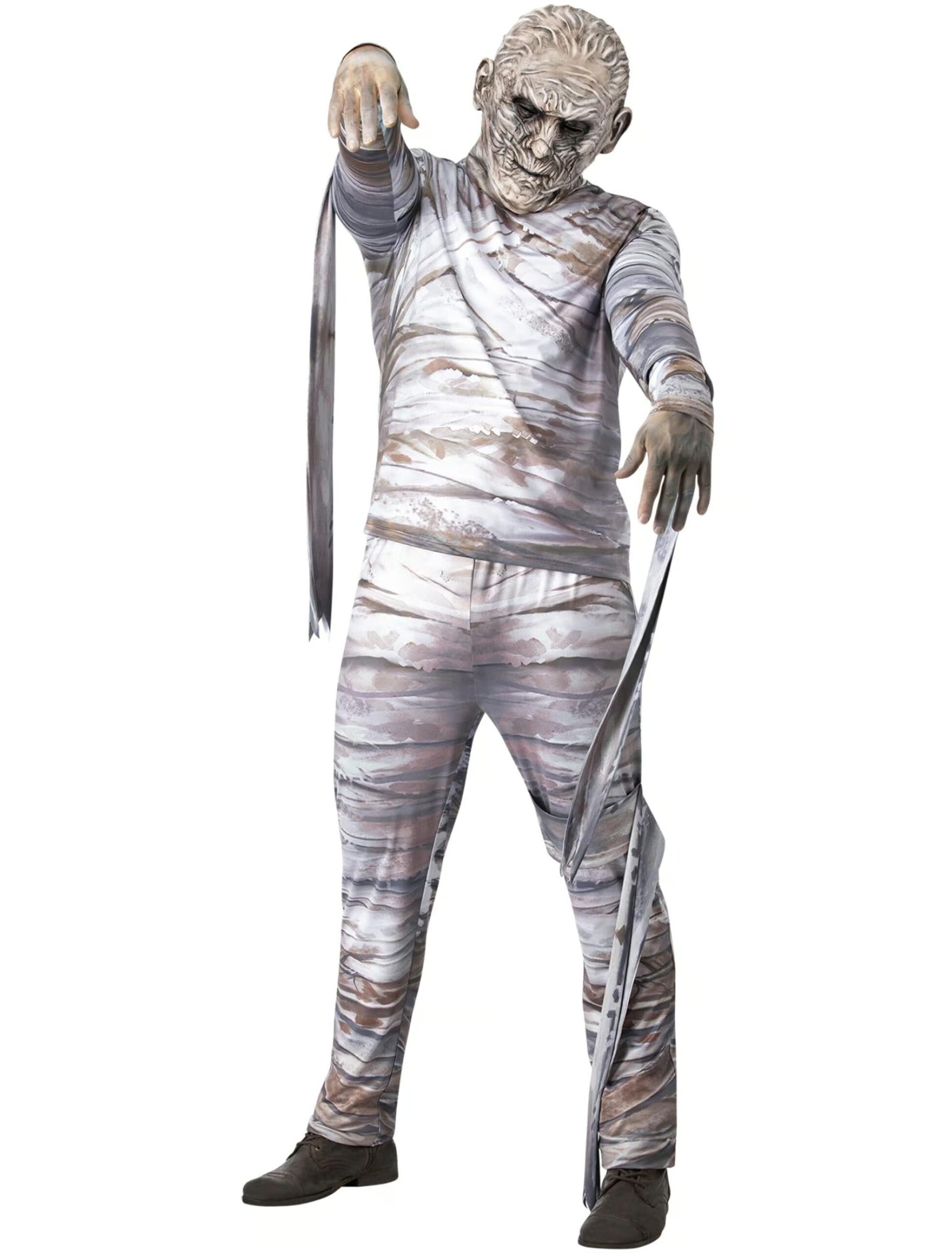 Bereit dich aus dem Grab der Langeweile zu erheben? Dann ist unser dreiteiliges Mumien Kostüm genau dein Ding! Mit Oberteil, Hose und gruseliger Latexmaske wirst du im Handumdrehen zur wandelnden Legende aus dem alten Ägypten. Das Outfit sieht aus, als hättest du dich gerade frisch aus dem Sarkophag geschält: Perfekt für Halloween, Mottopartys oder Karneval. Die Latexmaske sorgt für den authentischen Gruselfaktor, während Oberteil und Hose dich bequem durch die Nacht spuken lassen!