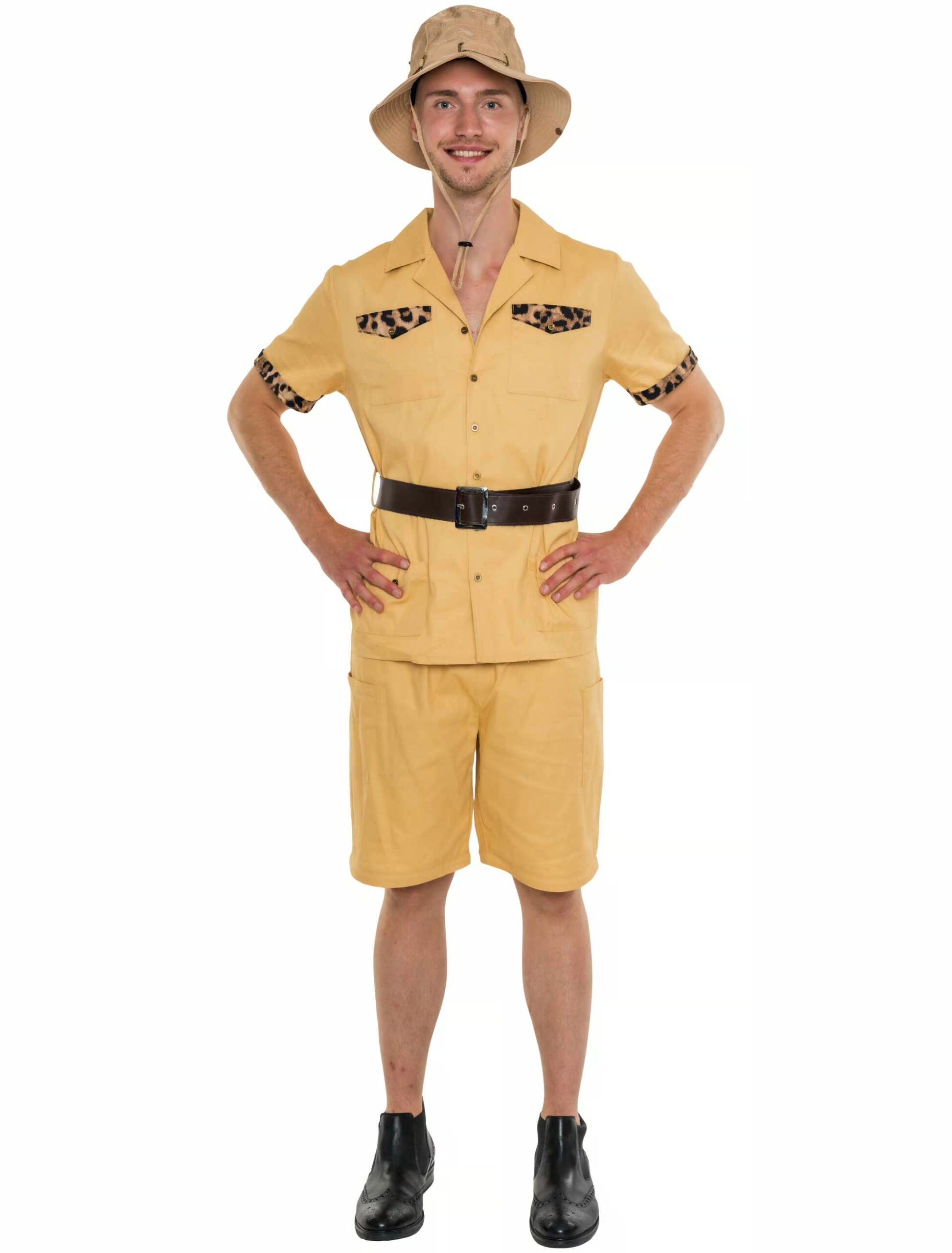 Auf ins Abenteuer, Ranger – Bereit, die Großstadt gegen den Dschungel zu tauschen und deine eigen Safari zu leiten? Mit unserem Kostüm bist du sofort der Chef auf jeder Party! Das Kostüm verpasst dir den Look eines echten Safariführers: Ein schickes Hemd mit Gürtel und Taschen, für alles, was du als Abenteurer brauchst. Dazu eine praktische Hose, welche man auf Knielänge durch Reißverschlüsse kürzen kann. Mit diesem Outfit kannst du deinen Freunden das Safari-Einmaleins beibringen – wie man wilde Tiere entdeckt und den besten Platz am Lagerfeuer findet. Egal ob auf der Kostümparty oder an Karneval, dieses Kostüm bringt dich zu jedem Abenteuer. Bereit für die nächste Entdeckungstour? Dann schnapp dir das Safari-Leiter Kostüm und mach dich bereit, der wildeste Typ der Party zu sein!
