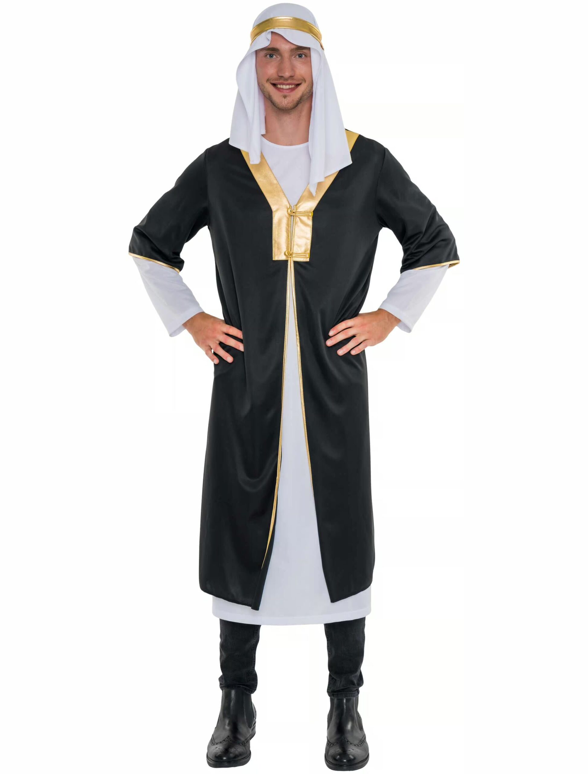 Der Prinz der Party-Oase – Hülle dich in den geheimnisvollen Charme eines echten Scheichs und genieße das Luxusleben! Mit unserem Scheich Kostüm bist du der Star jeder Feier und ein wahrer Meister des Glamours! Das Set besteht aus einem königlich Kaftan, der nicht nur mega bequem ist, sondern dich auch sofort wie einen echten Herrscher über die Wüste aussehen lässt. Dazu gibt’s natürlich das traditionelle Kopftuch, das jedem direkt klarmacht: Hier kommt der Scheich, der Chef der Party-Karawane! Als Scheich kannst du dich entspannt zurücklehnen und so tun, als würdest du über grenzenlose Reichtümer, schnelle Kamele und eigene Sanddünen verfügen. Also, auf was wartest du? Schnapp dir das Scheich Kostüm und erlebe, wie es sich anfühlt, die Party-Oase zu regieren. Die Wüste ruft – und mit dir wird sie garantiert zum Hotspot der nächsten Feier!