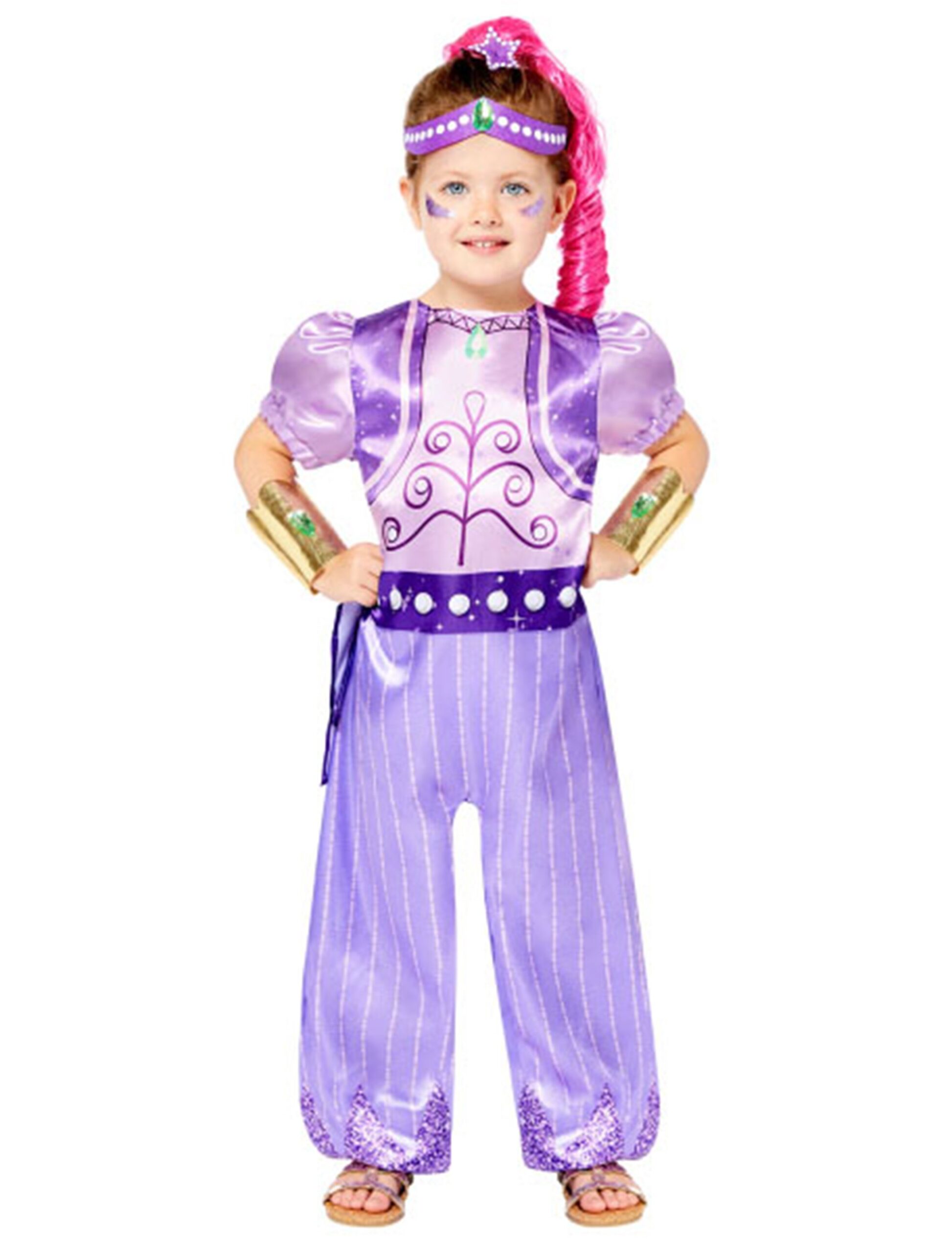 Mit unserem wunderschönen lila Kinderkostüm verwandelst du dich in die funkelnde Dschinn Shimmer aus der zauberhaften Welt von Shimmer und Shine. Das vierteilige Set besteht aus einem glitzernden Overall, einem passenden Stirnband, einem Haarteil für die perfekte magische Mähne und natürlich zwei Handgelenkstulpen. Egal, ob Karneval, Mottoparty oder einfach nur ein magischer Tag im Kinderzimmer – mit diesem Outfit strahlst du heller als jede Wunderlampe! Einfach anziehen, die Arme verschränken, ein bisschen Glitzer verstreuen und schon beginnt dein nächstes Abenteuer. Ab geht’s ins Reich der Wünsche!
