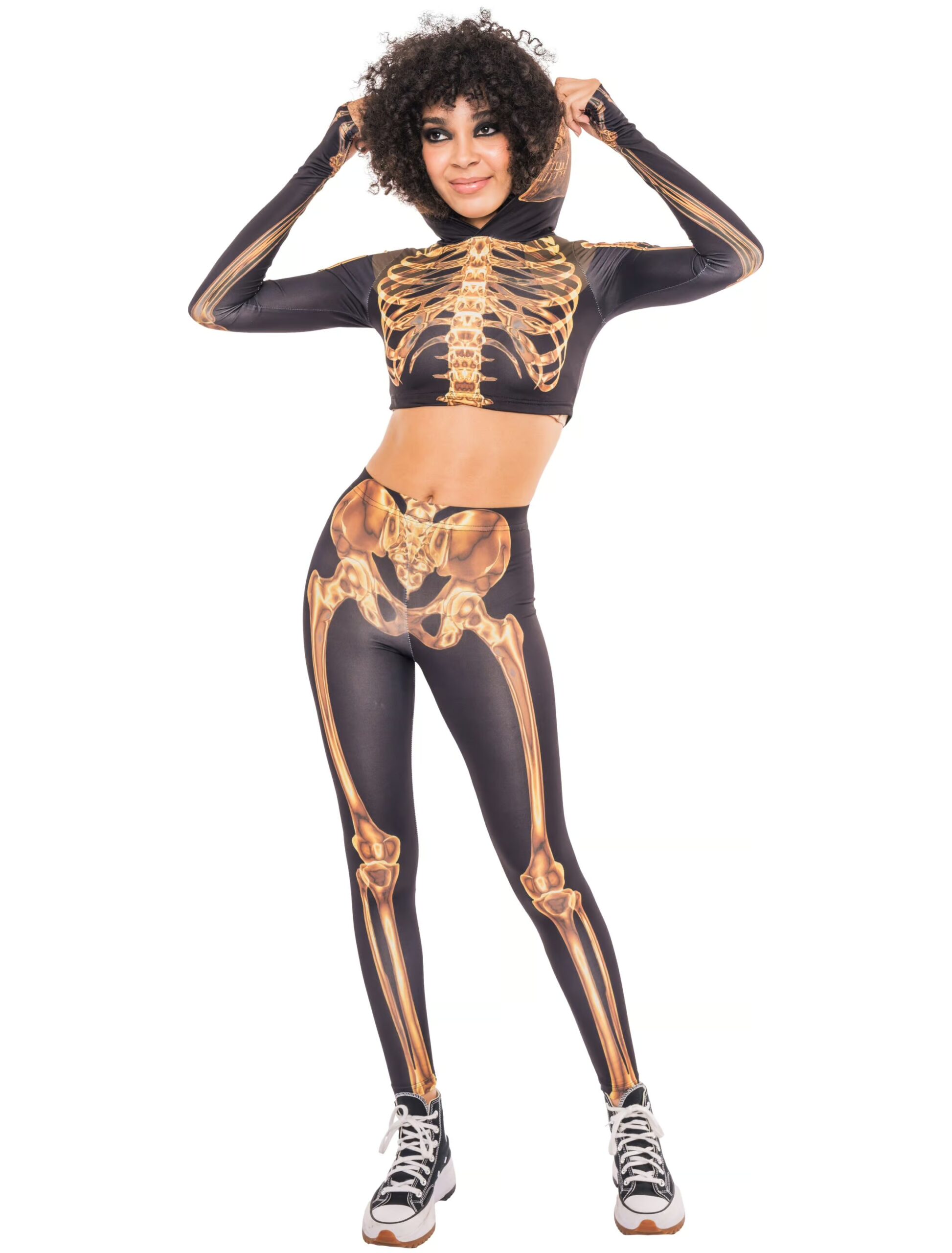Kostüm Skelett Print Damen braun/gold S/M, ideal für Karneval & Fasching