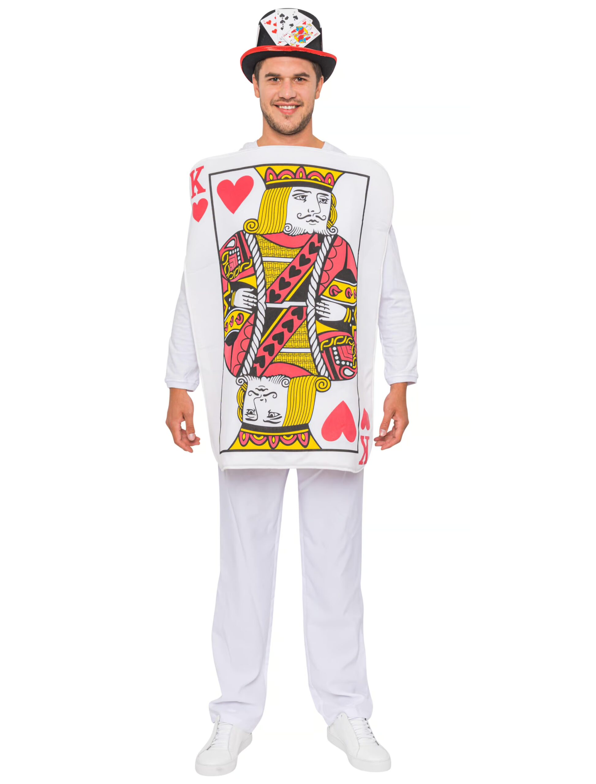 Vielleicht werden diesen Karneval die Karten neu gemischt und Herz ist Trumpf. Dann bist Du mit dem attraktiven Spielkartenkostüm Herz König auf der sicheren Seite. Die Vorderseite des aparten, weißen Kostüms ist, der Karte des Herzkönigs aus dem französischen Kartenspiel mit den Farben Schwarz, Rot und Gelb nachempfunden. Dieses Spielkartenkostüm ist nicht nur besonders schick, sondern auch praktisch, denn Du kannst es einfach überziehen und über der Kleidung tragen. Mit den passenden Accessoires aus unserem Shop wirst Du Deine Attraktivität noch steigern, sodass sich nicht nur die Herzdamen, sondern auch die schönen Faschingsprinzessinnen nach Dir umdrehen.