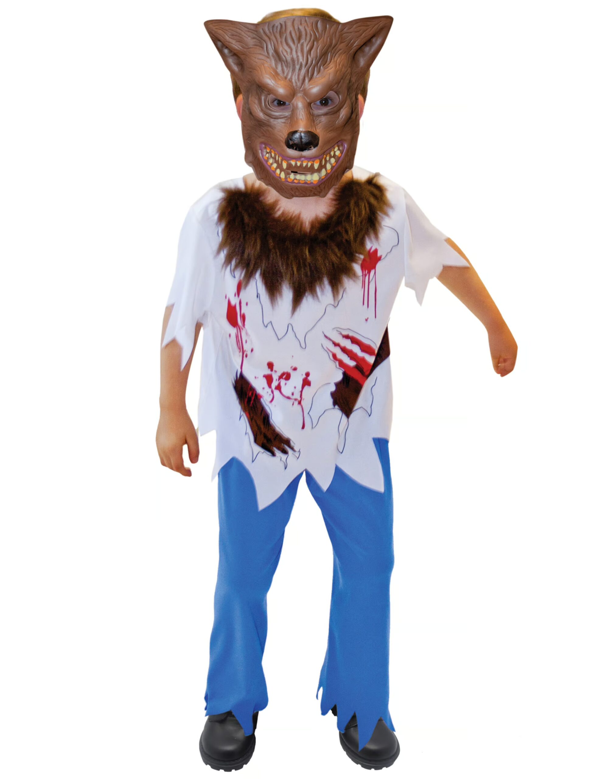 Ein schauriges Komplett-Kostüm für Kinder zu Halloween. Werde bei der nächsten Party zu einem Werwolf! Das Kostüm ist aus 100% Polyester gefertigt und besteht aus drei Teilen. Im Lieferumfang ist ein Oberteil, eine Hose sowie eine Maske enthalten. Die Maske ist mit Gummibändern und Klettverschlüssen ausgestattet. Das Oberteil ist um den Hals mit einem Plüschbesatz versehen. Die Größe 6-8 Jahre entspricht einer Kindergröße von ca. 128 cm.