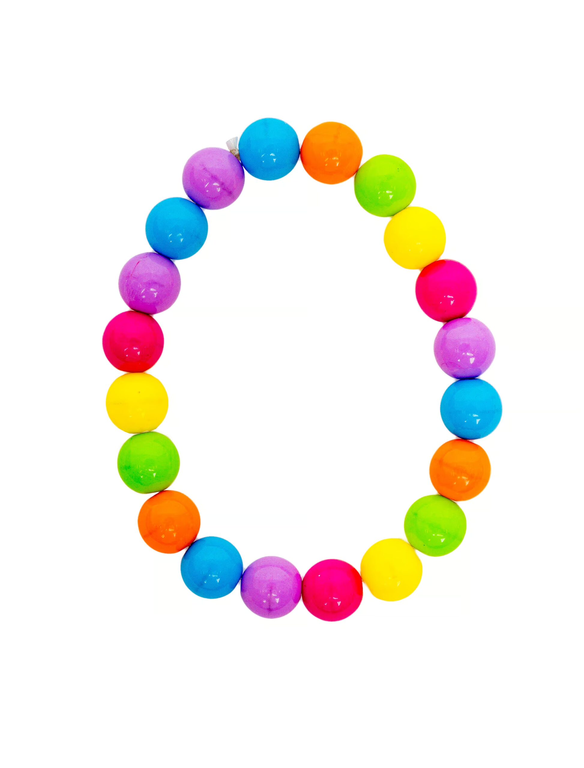 Armbänder dienen nicht nur als modisches Accessoire für jede Altersgruppe, sondern spiegeln manchmal auch richtige Statussymbole wieder. Das vorliegende Armband (ca. 20cm lang) mit vielen verschiedenfarbigen Perlen (ca. 0,5cm breit) ist hervorragend geeignet für alle junggebliebenen Fans der legendären Regenbogenpartys sowie 80er Jahre Mottopartys. Mit diesem modischen Accessoire wird jedes, auch schon in die Jahre gekommene, Kostüm in neuem Glanz erscheinen.