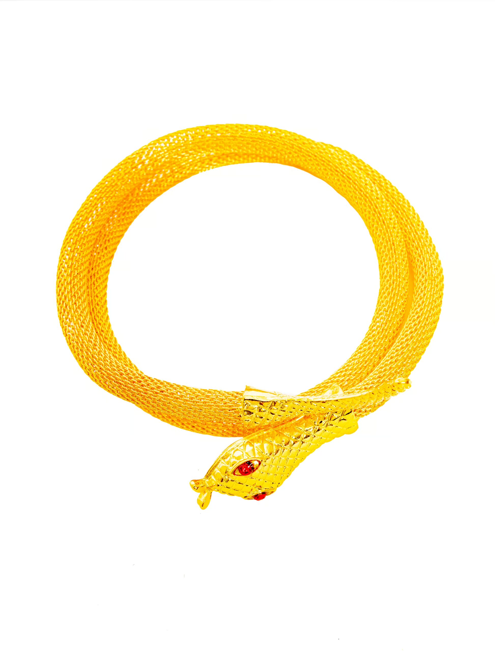 Der Armreif goldene Schlange ist aus Metall und stellt eine Schlange mit roten Augen dar. Er kann zum Karneval und auch als Abendschmuck getragen werden. Er erinnert an ägyptische Pharaoninnen. Wer sich also für ein ägyptisches oder orientalisches Kostüm entschieden hat, der wird das Schmuckstück goldene Schlange sicher mögen.