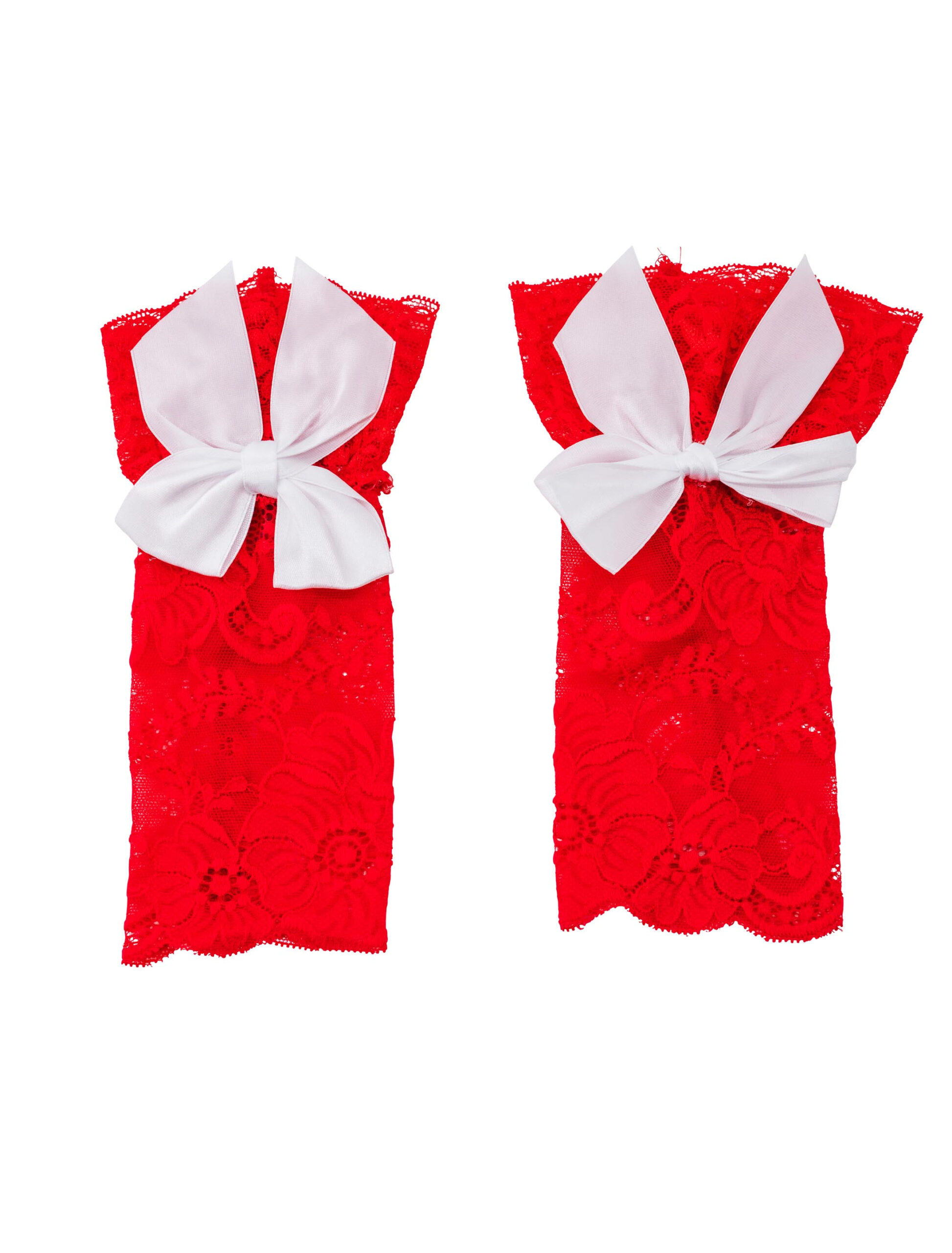 Kostümzubehör Armstulpen mit Spitze rot/weiß L/XL