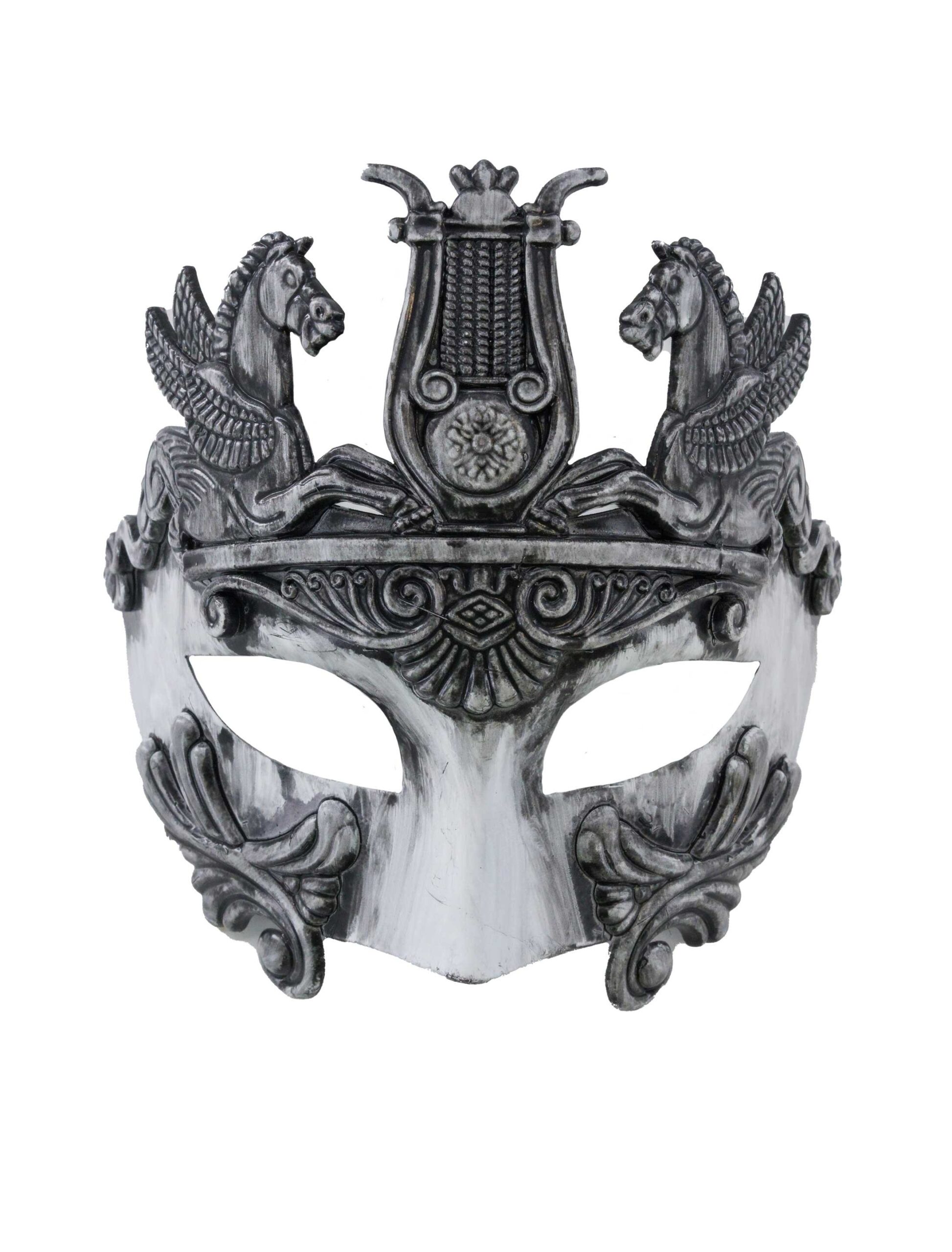 Diese auffällige Augenmaske im Krieger-Design vereint antiken Charme mit einer kraftvollen Ausstrahlung. Verziert mit detailreichen Ornamenten, kämpferischen Pferdefiguren und einer kunstvollen Lyra, wirkt sie wie ein Relikt aus einer vergangenen Ära. Ideal für Maskenbälle, LARP, Fantasy-Events oder als imposantes Accessoire zu historischen und mythischen Kostümen.