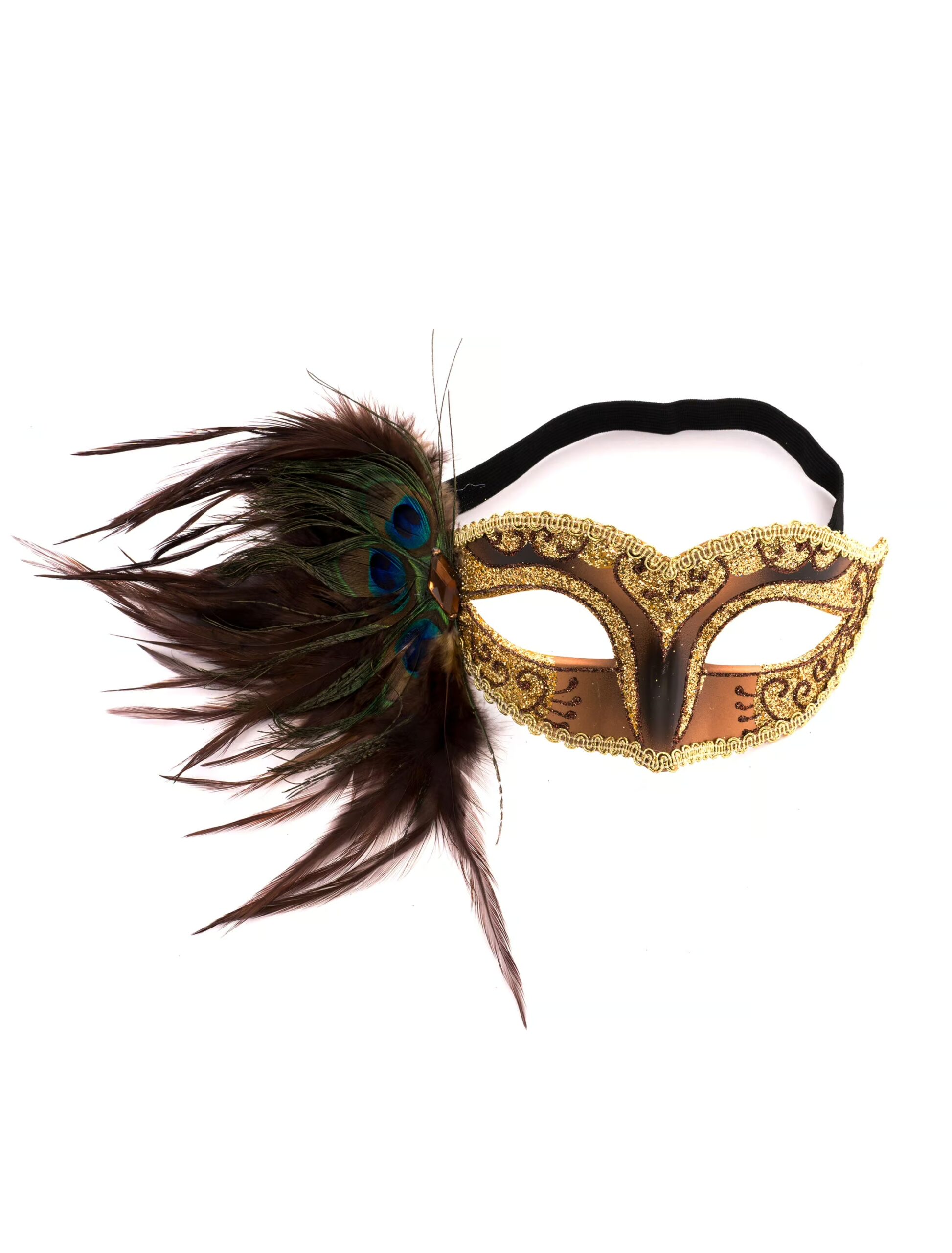 Du bist auf der Suche nach einer passenden Maske für Dein venezianisches Outfit? Diese Augenmaske gold mit Pfauenfeder darf hier nicht fehlen. Sie wird mit goldenem Glitzer verziert und ist mit einem Gummiband ausgestattet. Eine wunderschöne Maske zu Deinem venezianischen Kostüm beim nächsten Maskenball!