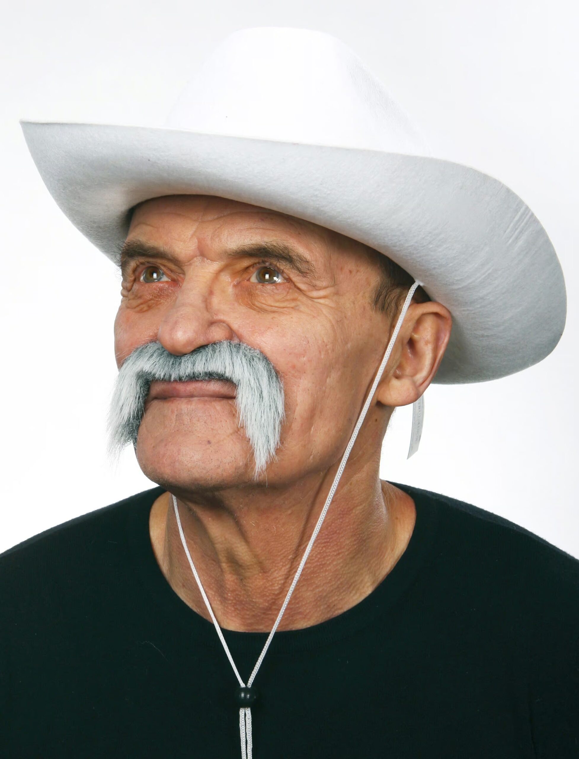 Stilechter Wikinger Bart zum Ankleben! Aufgepasst: Du möchtest Deinem Kostüm noch den letzten Schliff verleihen? Dann ist dieser charismatische Schnäuzer, der seitlich Deinen Mund umrandet und aus grau-weißem Kunsthaar besteht, dafür ideal. Ein absolut (haariger) Hingucker!
