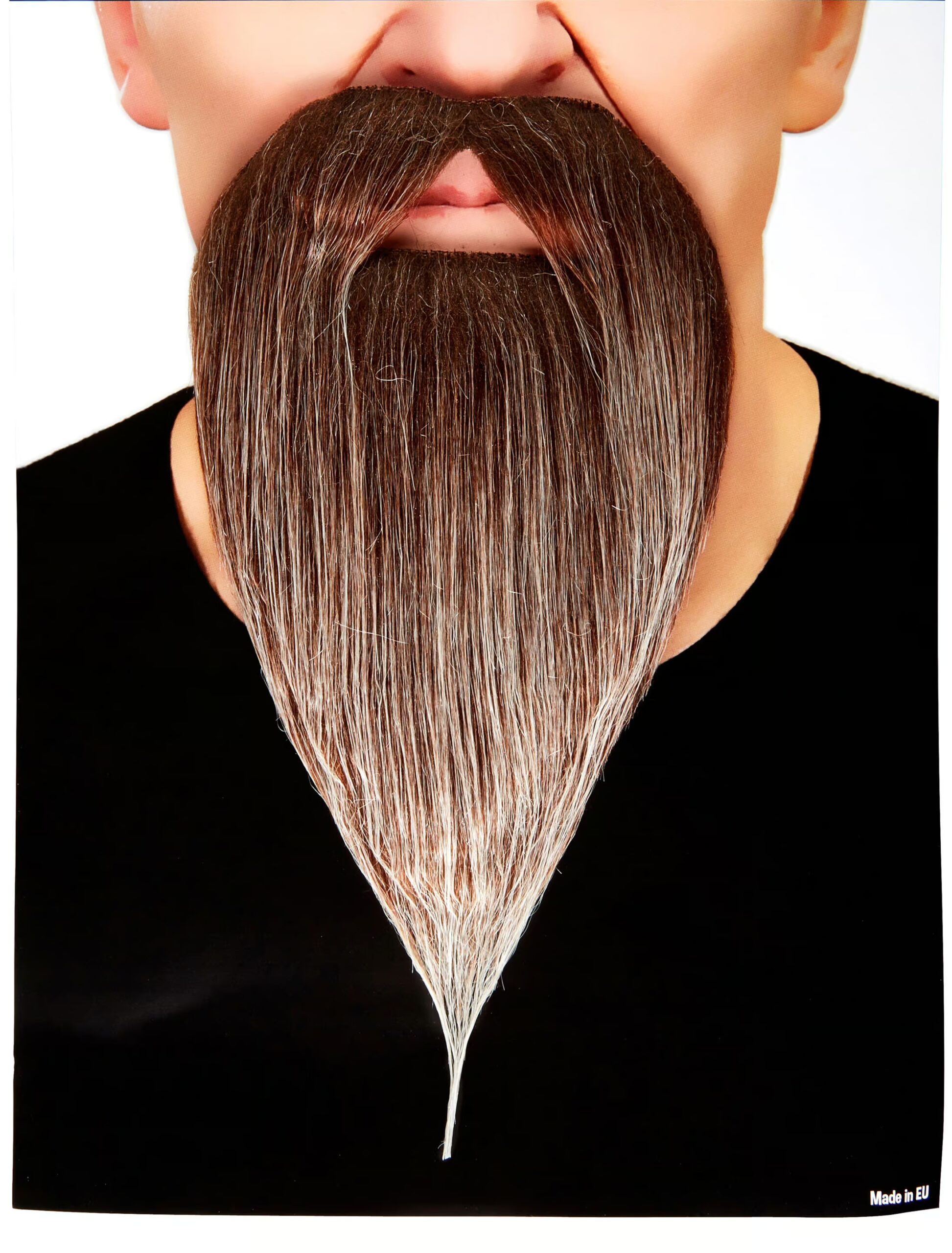 Wie durch Zauberhand ist Dir plötzlich ein so langer Bart gewachsen! Naja, fast! Dieses lange, grau-braune Gesichtsmähne†besteht aus Kunsthaar, welches Deinen Mund komplett umgibt und Spitz in der Höhe Deiner Brust zusammenläuft. Der selbstklebende Bart eignet sich hervorragend als i-Tüpfelchen für Zauberer Kostüme!