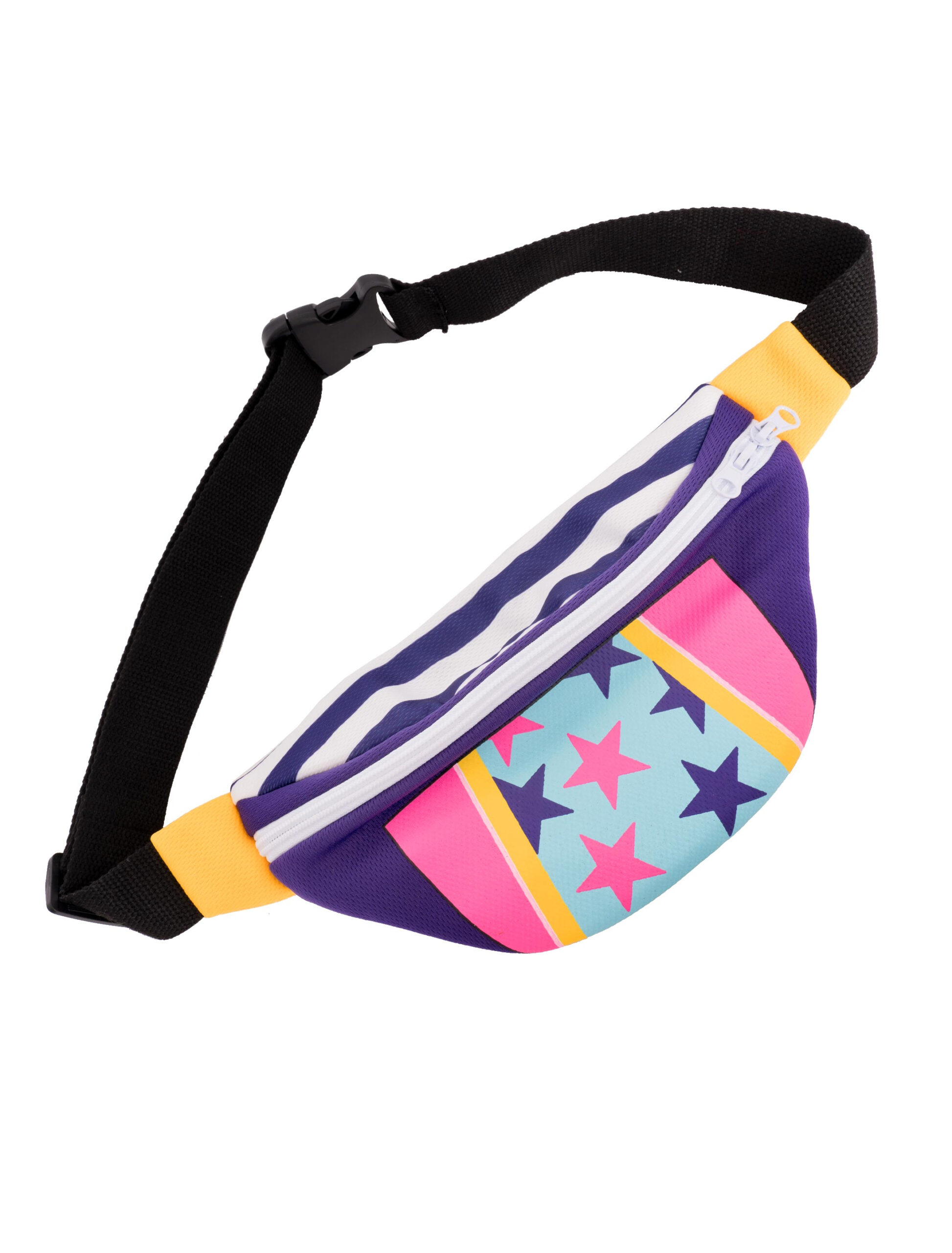 So aufregend können Bauchtaschen sein! Dieses stylische Exemplar mit den blau-weißen Streifen, den pinken und blauen Sternen und den orangefarbenen Akzenten ist zusätzlich mit einem Reißverschluss ausgestattet, der Deine Wertsachen sicher schützt. Der praktische Gurt ist größenverstellbar und lässt sich leicht öffnen und schließen.