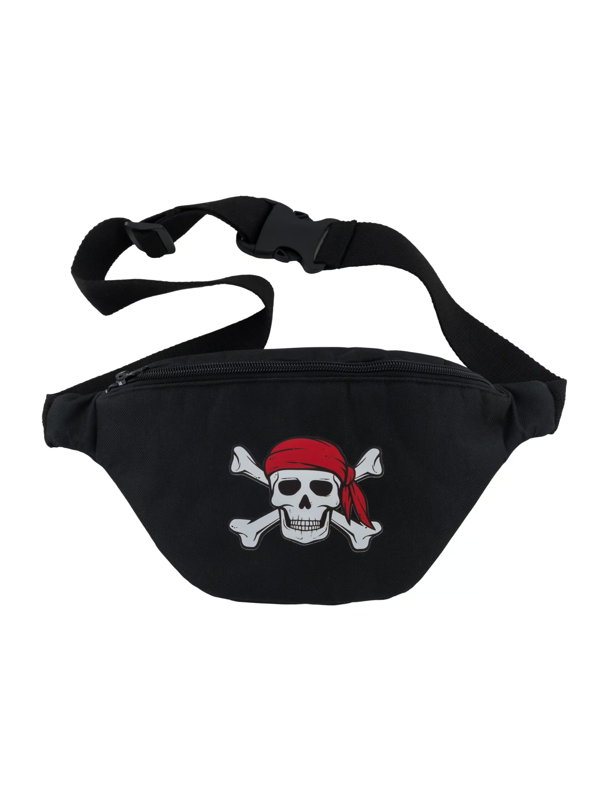 Unsere Bauchtasche Pirat ist das ideale Accessoire für alle Freibeuter und Schatzsucher! Auf der Vorderseite prangt das klassische Totenkopflogo, das deinem Outfit sofort einen stilechten Piraten-Look verleiht. Mit genug Platz für Beute und Kleinigkeiten bist du bestens ausgerüstet für Karneval, Festivals oder wilde Mottopartys.