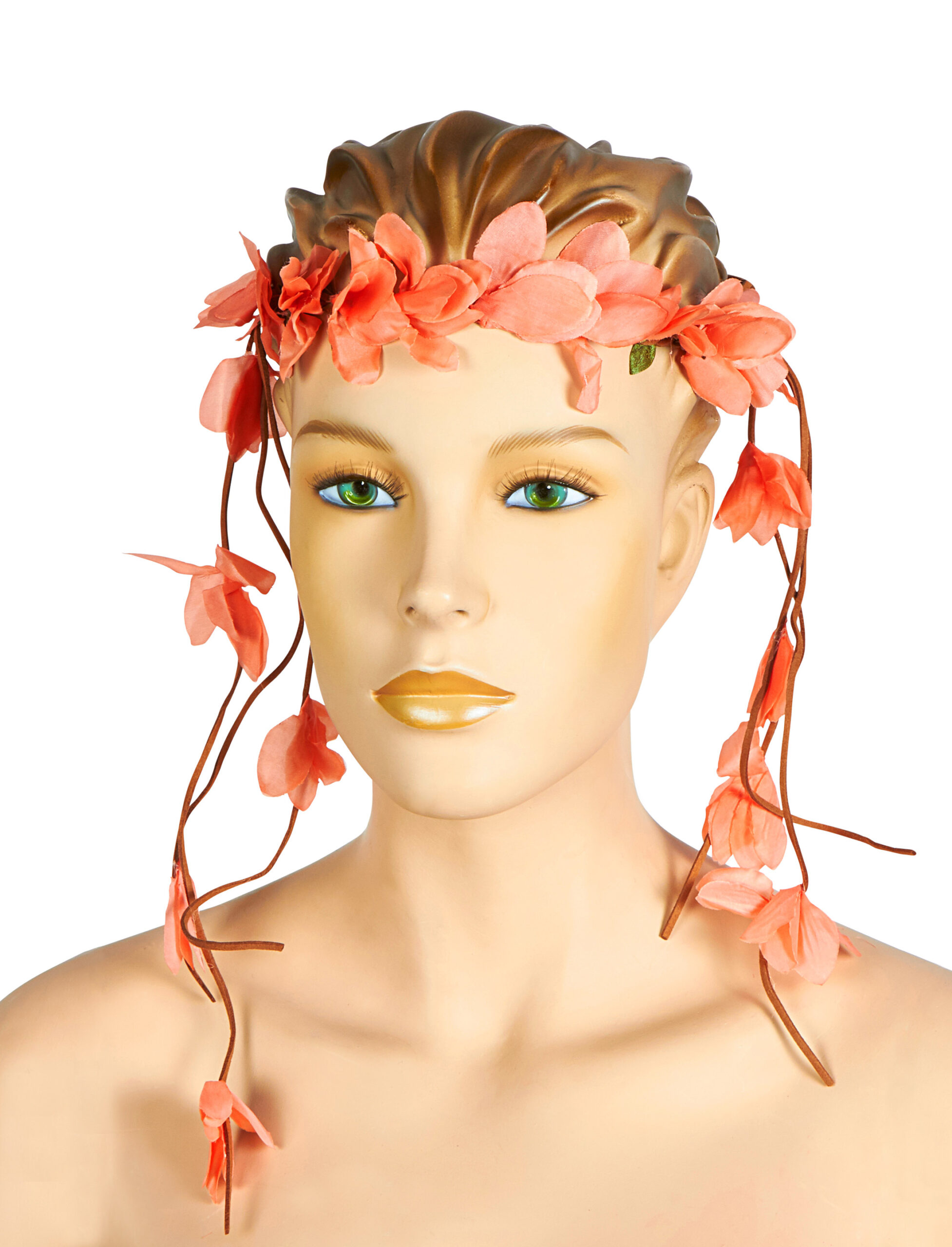 Dieser herrliche Blumenhaarkranz ist eine tolle Ergänzung für Dein Flower-Power-Outfit! Die orangenen Blüten aus Polyester sind an einem Band befestigt und sorgen für einen natürlichen Look. Ob als Hippie, Blumenmädchen oder Elfenkriegerin verkleidet – dieser Kopfschmuck geht immer!