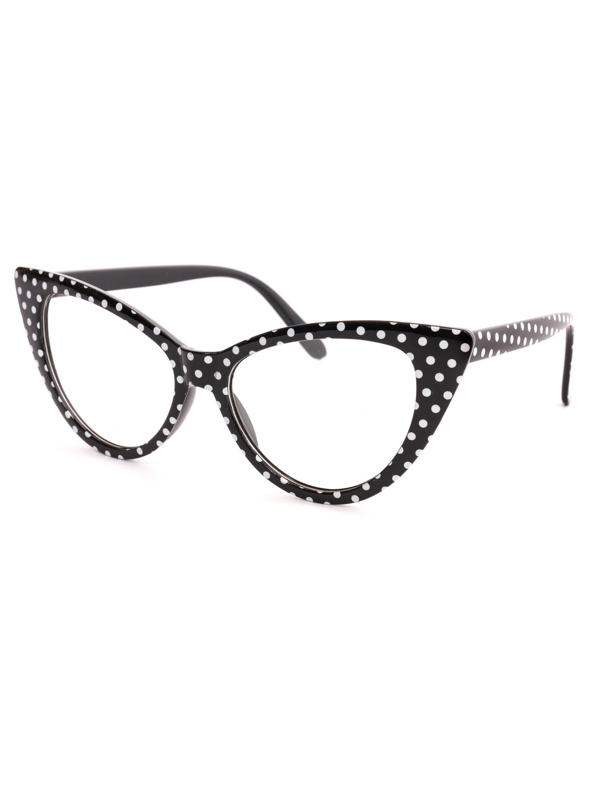 Diese coole Brille im Stil der 50er Jahre musst Du unbedingt haben! Sie besteht aus Kunststoff und ist schwarz mit weißen Punkten. Egal ob Mann, Frau oder Kind – die fetzige Brille peppt jedes Outfit auf. Kombiniere sie zum Beispiel zur “schwarzen Perücke 50er mit weißem Haarband” oder dem “Dreiteiligen Kleid 50er in Schwarz”.