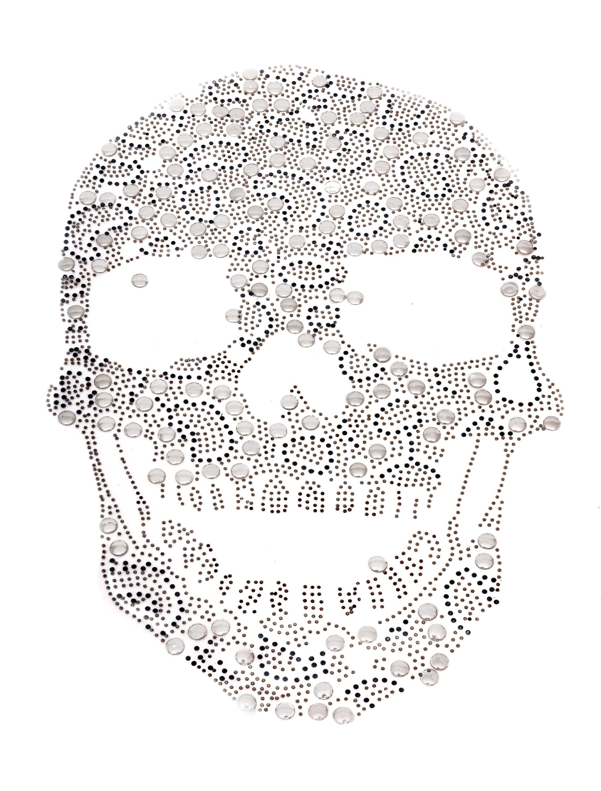Kostümzubehör Bügelbild Kristallschädel silber 24x37cm