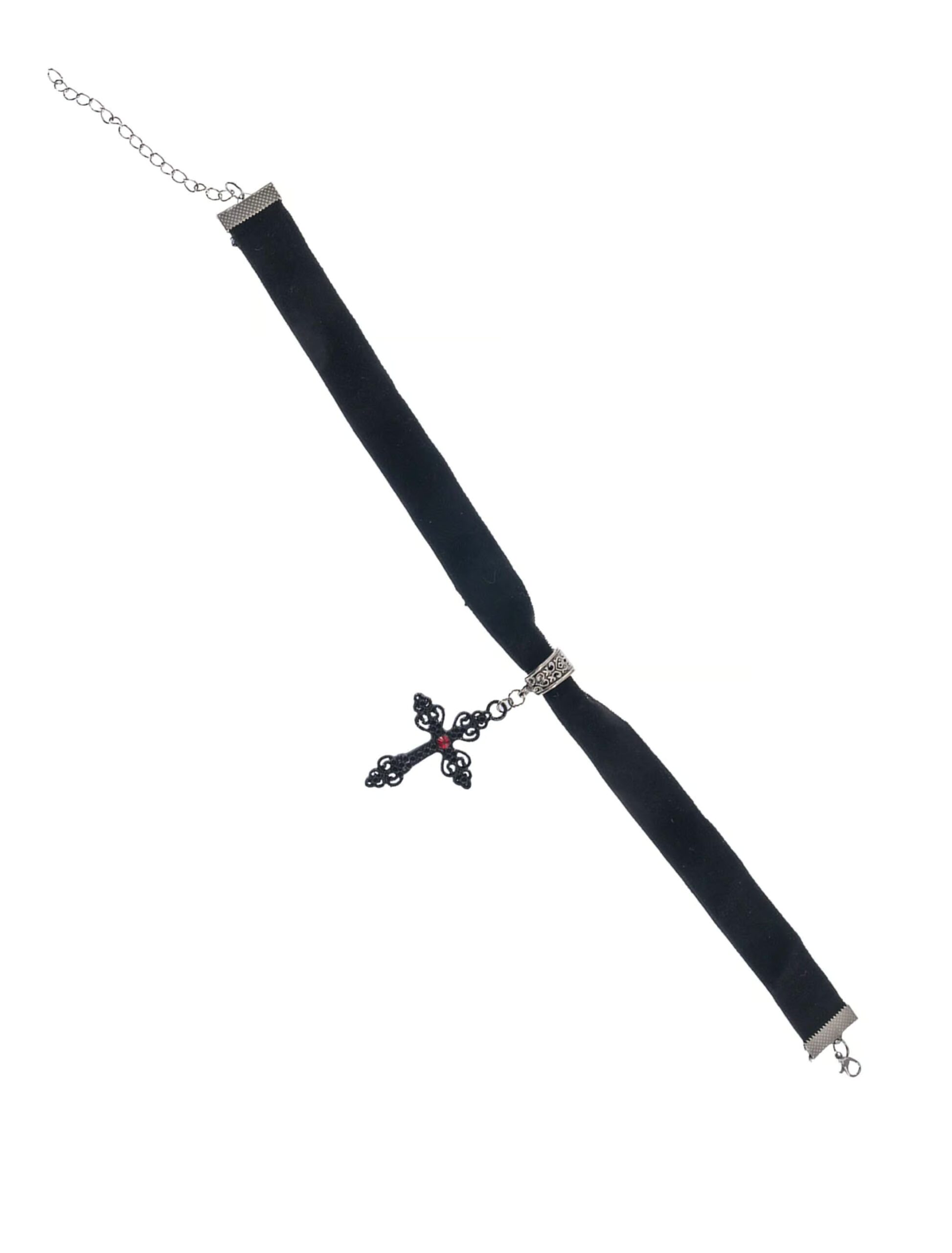 Heilig oder sündig? Mit unserem Choker Kreuz kannst du beides sein! Dieser Halsschmuck vereint das Beste aus zwei Welten: die Eleganz eines klassischen Designs und die rebellische Coolness, die dir den perfekten „Bad Girl meets Good Girl“-Look verpasst. Der Choker schmiegt sich stylish um deinen Hals, während der Kreuzanhänger das gewisse Extra verleiht. Ob du als geheimnisvolle Vampirin, Gothic-Ikone oder sündhaft gute Nonne bei der nächsten Kostümparty glänzen willst, dieses Schmuckstück wird alle Blicke auf dich ziehen. Schnapp dir dieses göttlich-stylishe Accessoire und entscheide selbst, ob du heute Engel oder Teufel spielen willst!