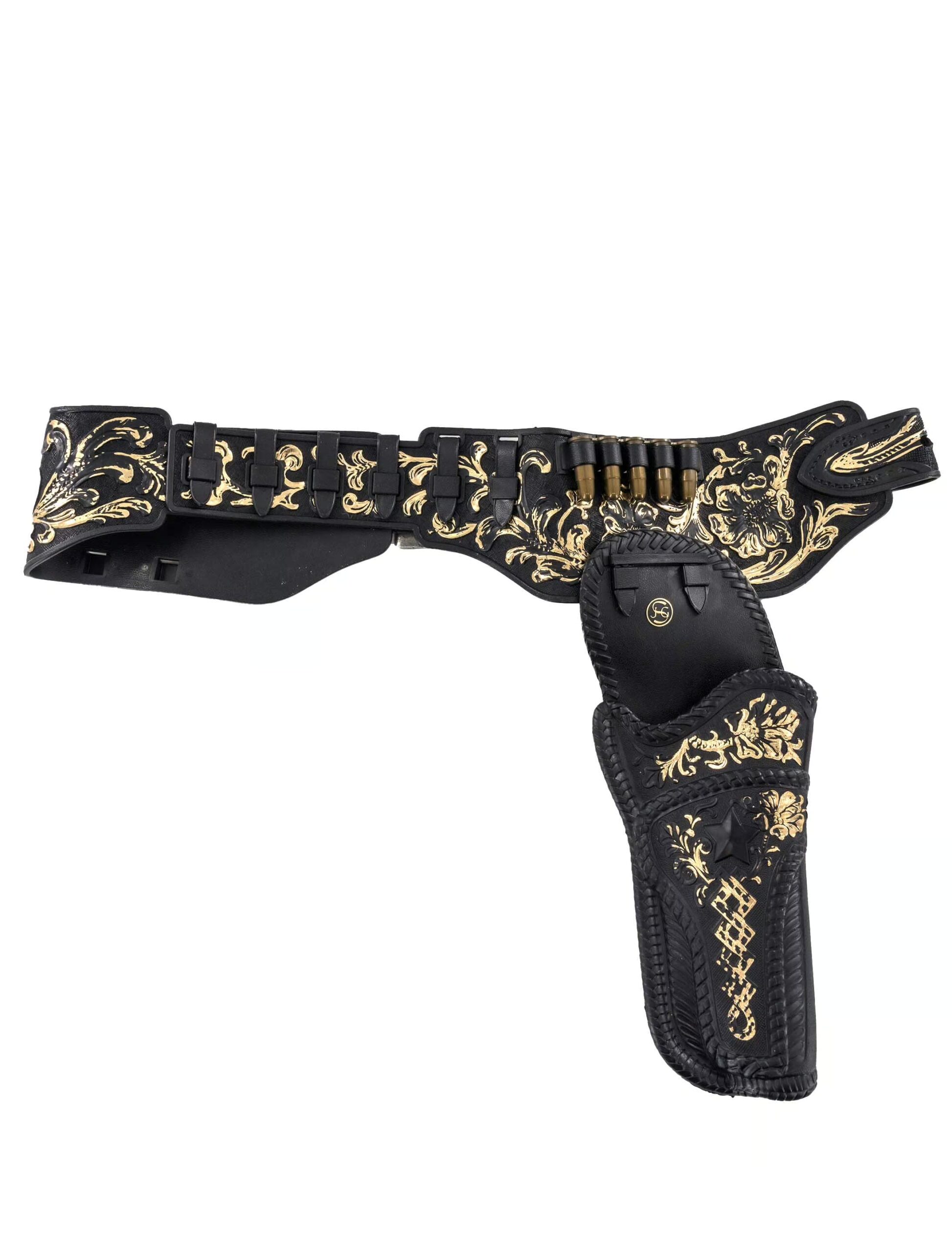 Mit unserem Coltgürtel inklusive Holster bist Du der Sheriff, Outlaw oder Cowboy, den jede Party verdient. Das stilechte Holster sitzt perfekt an Deiner Seite und bietet Deinem Colt den Ehrenplatz, den er verdient. Egal ob Du beim Kostümwettbewerb abräumst, beim Showdown auf der Tanzfläche glänzt oder einfach mit Deinem Outfit Eindruck machst – dieser Gürtel macht Dein Cowboy- oder Western-Kostüm erst richtig authentisch. Kombiniere den Gürtel mit einem Cowboyhut, ein paar Stiefeln und einem coolen Hemd, und schon bist Du bereit, die Party zu erobern!