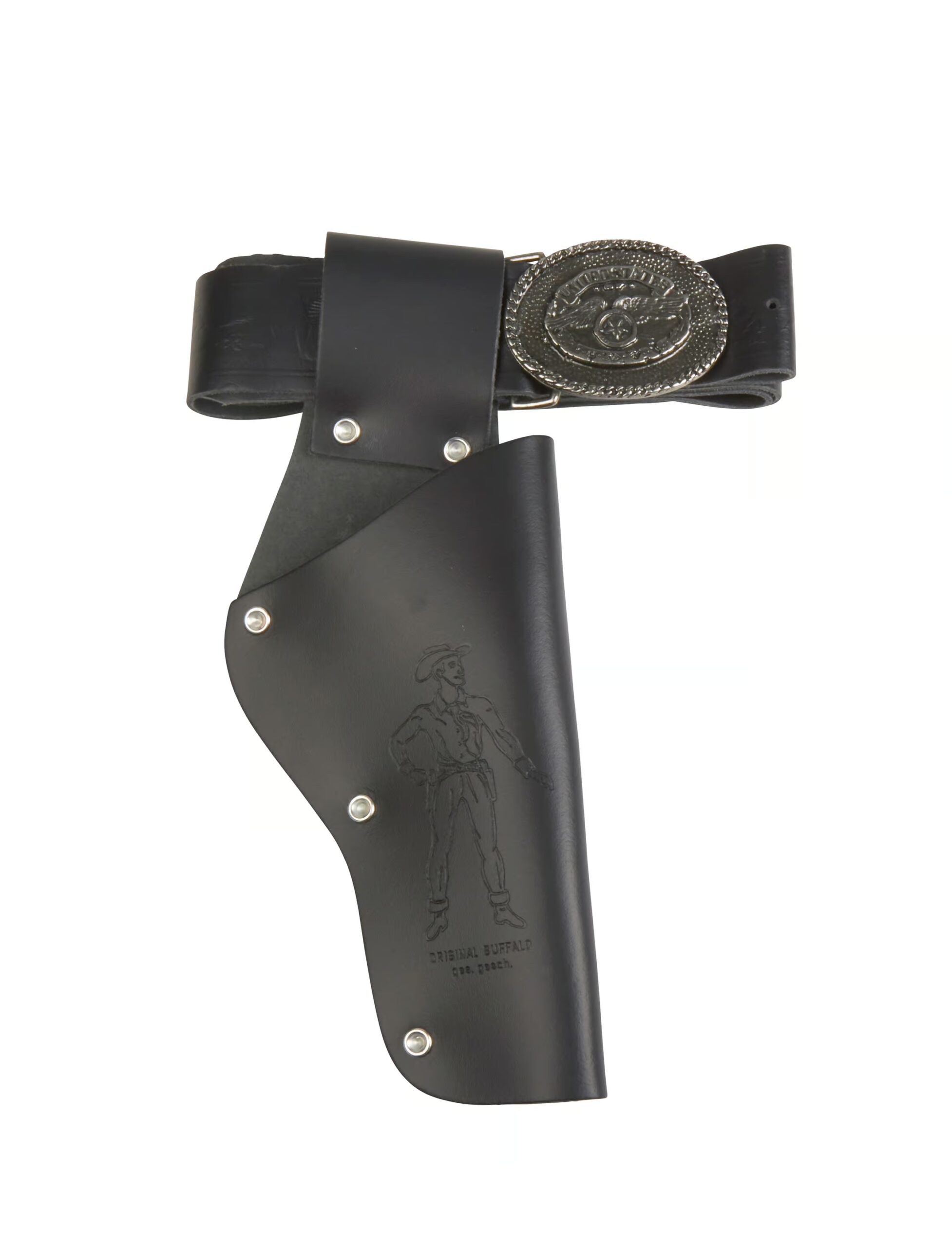 Perfekt für alle Revolverhelden unter Euch: unser Pistolengürtel mit Holstertasche! Der Holster ist dezent mit einer Cowboy-Gravur und Nieten verziert. Der Gürtel wird mit einer detailreichen Schnalle aus Metall gehalten. Beide Teile sind aus 100% Leder gefertigt. Wenn’s drauf ankommt, ziehst Du damit Deinen Revolver schneller als Dein eigener Schatten!